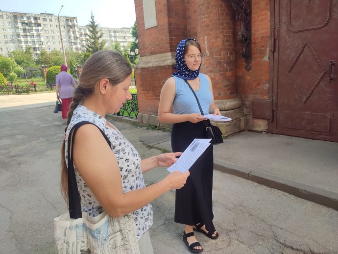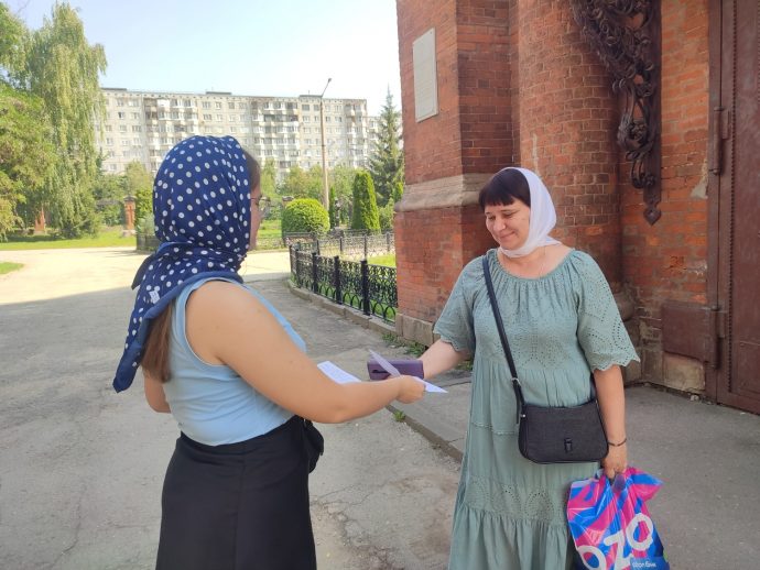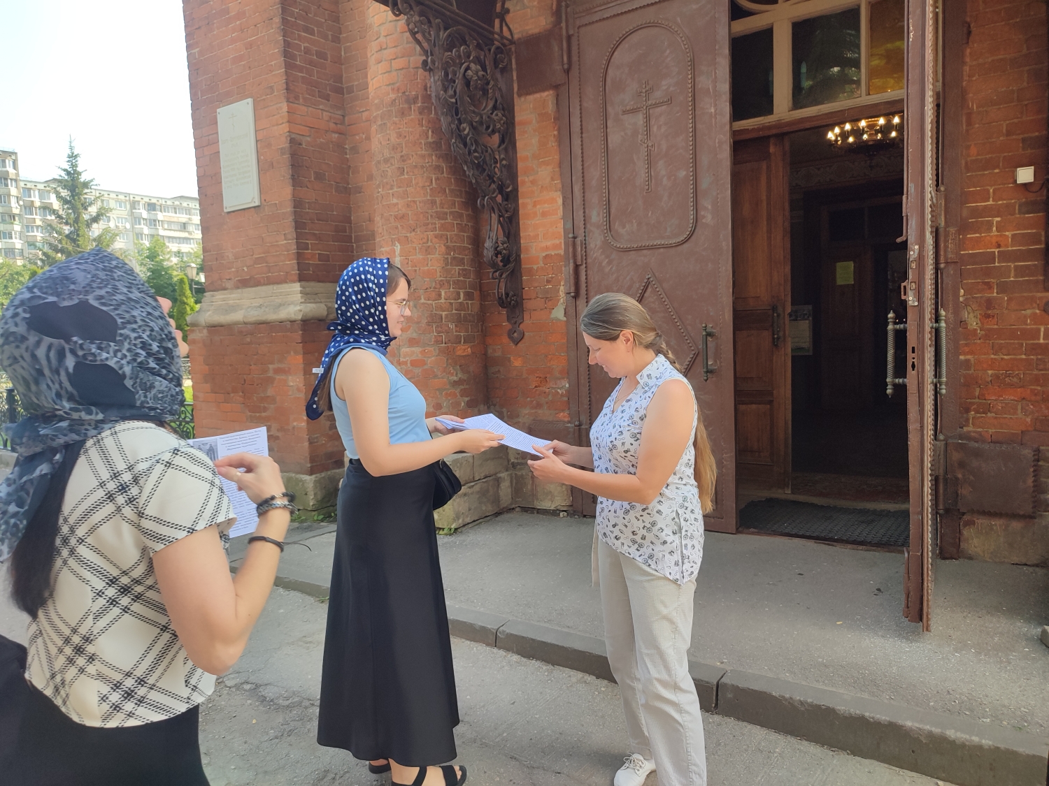 В рамках акции прихожанам раздавали информационные листовки, в которых содержится житие святых, изображение иконы благоверных князей и акафист им.