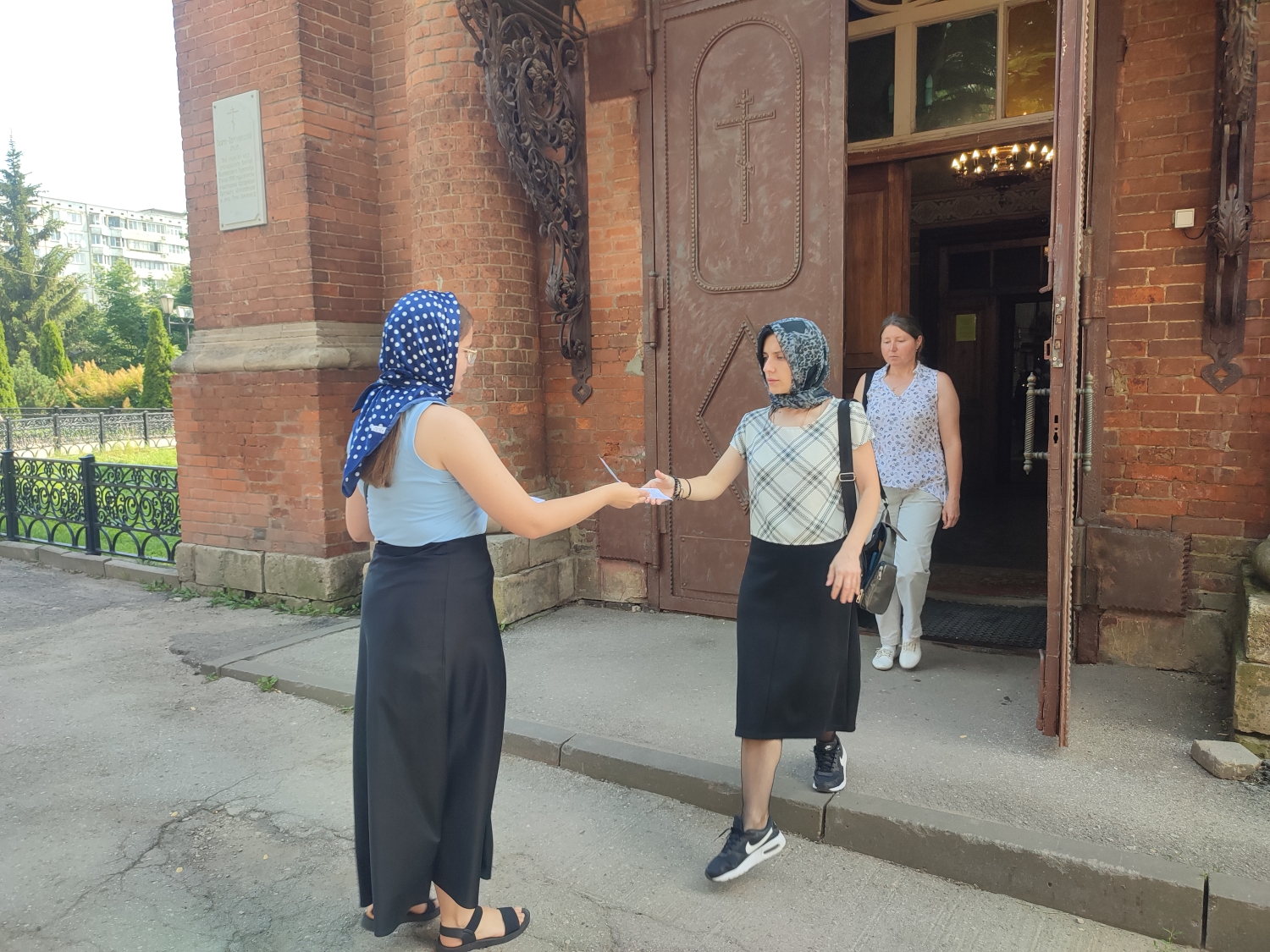 Добровольцы Северного благочиния раздавали листовки по окончании Божественной литургии. Елизавета Проценко отметила: «Я не первый раз принимаю участие в акции «Есть такой праздник!». Прихожане нашего храма всегда с интересом принимают листовки, благодарят нас, а некоторые просят сразу несколько листовок. Их они приносят домой и раздают своим близким. Я считаю, что такая акция очень полезна для всех прихожан, а не только для детей и молодежи. У всех нас есть пробелы в знаниях, которые можно восполнять в такой лёгкой и доступной форме».