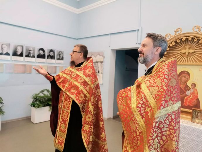 Возглавил молебное пение святым равноапостольным Кириллу и Мефодию председатель отдела религиозного образования и катехизации Тульской епархии протоиерей Олег Анохин в сослужении клирика храма святого великомученика Димитрия Солунского, ответственного за взаимодействие с педуниверситетом, иерея Алексия Иванова.