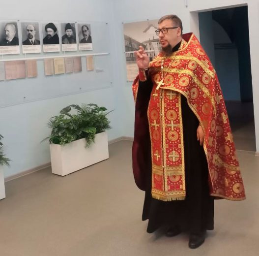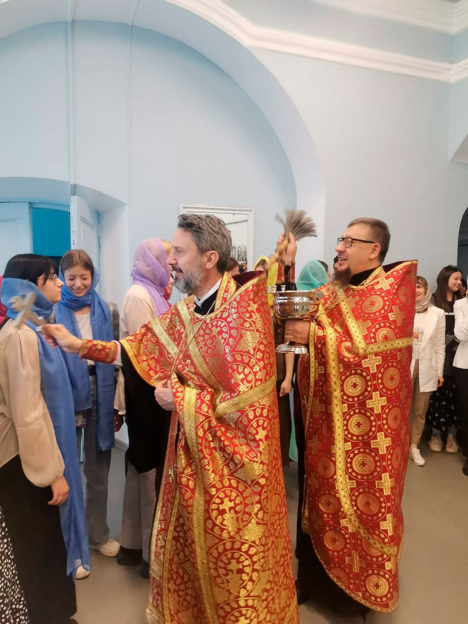 Священник Алексий присоединился к поздравлению: «Завтра мы празднуем память равноапостольных Кирилла и Мефодия не просто, как некий исторический факт: мы вспоминаем, что их трудами мы получили славянскую азбуку, письменность, переводы богослужебных книг, приобщились к христианской традиции. Благодаря этому сформировалась великая русская культура, и сегодня, сохраняя и развивая наш язык, мы противостоим современным вызовам русофобии, фальсификации истории, уничтожению наших традиций. Россия дала миру только в XIX веке огромное количество гениев в области литературы, искусства, музыки, ученых мирового уровня, воспитанных в русской культуре, церковных традициях. Желаю вам осваивать преподаваемые знания, чтобы положить твердое основание вашему служению учителями, а может даже региональными министрами, политиками, общественными деятелями на благо нашей Родины».