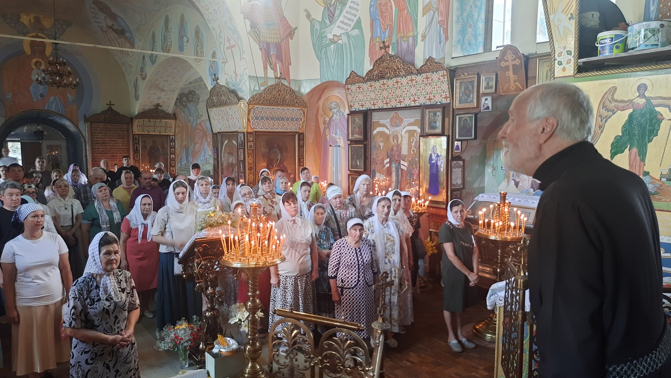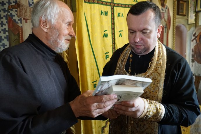 Татьяна Юрищева, свечница храма, поблагодарила за книжный подарок и поделилась наблюдениями: «По лицам и глазам приходящих в храм видны те переживания и опасения, которые могут разрешиться лишь всеотзывчивым милосердием и содействием всех Небесных сил».