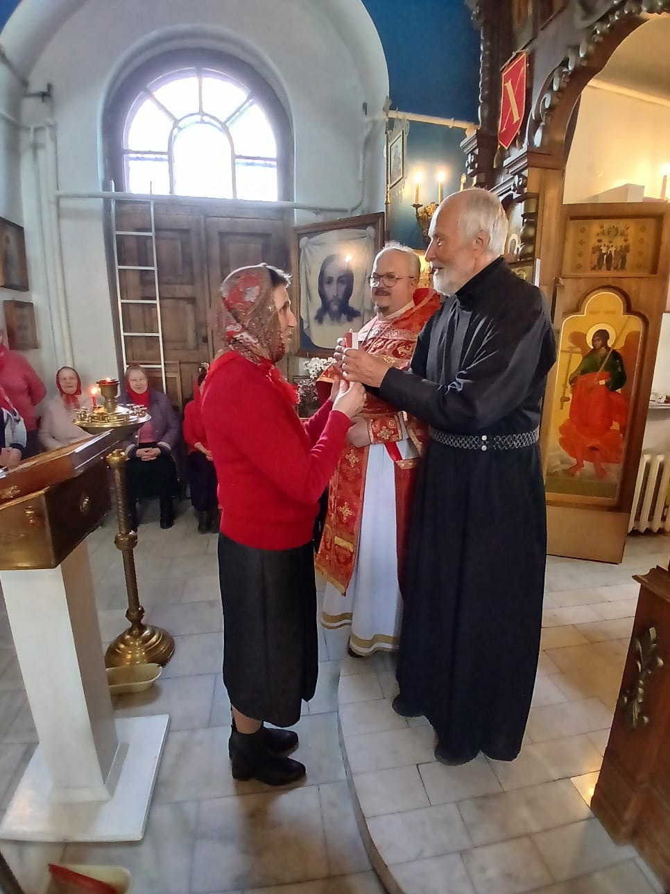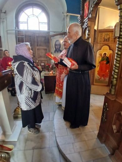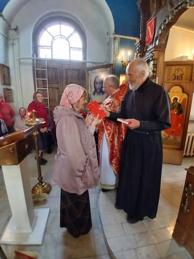 Свечница Серафима Жулева поблагодарила за полученный книжный подарок, а также отметила важность прозвучавших слов: «Наш батюшка в проповедях побуждает нас, прихожан, по примеру апостолов и первых христиан,свидетельствовать людям о даре спасения души, который каждому даётся по вере».