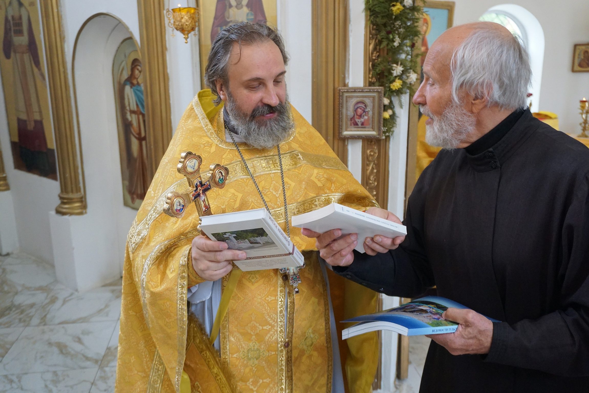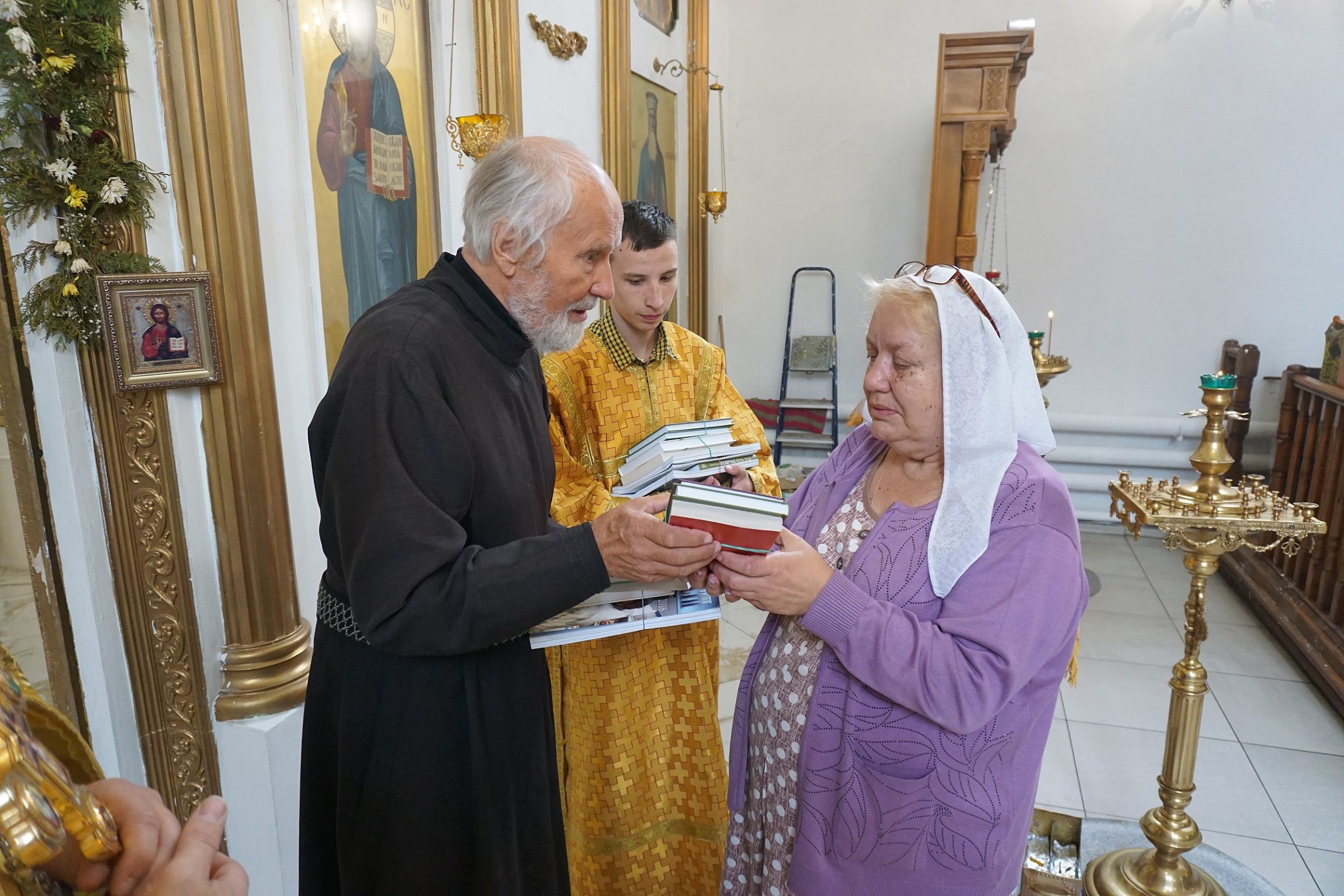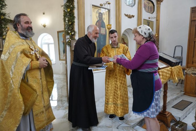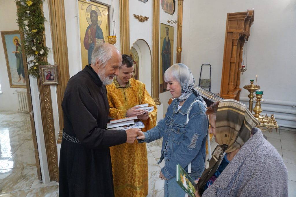 В храме Всех святых, в России просиявших, города Северо-Задонска прошло просветительское мероприятие, организованное совместными усилиями Тульского отделения Общества русской словесности и Новомосковского благочиния, с вручением церковной литературы духовенству, причту и причастникам.