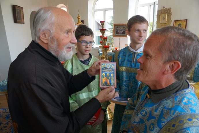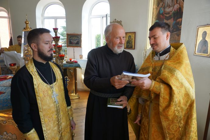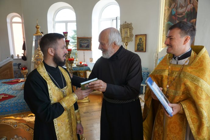 Протоиерей Сергий Ковалевский, настоятель храма, поблагодарил руководство и активистов Общества русской словесности за духовно-просветительскую литературу и выразил надежду на благоуспешное продолжение сотрудничества.