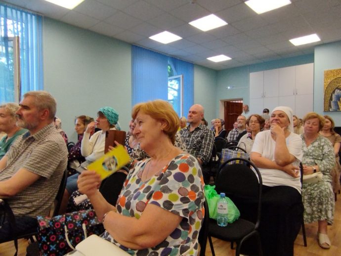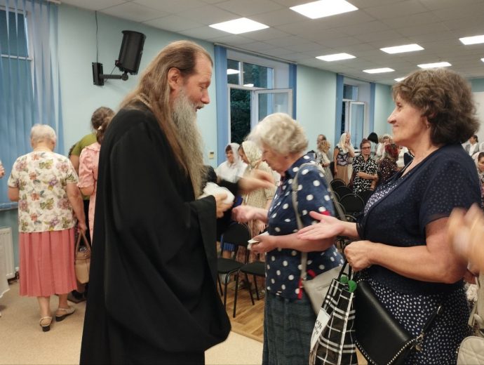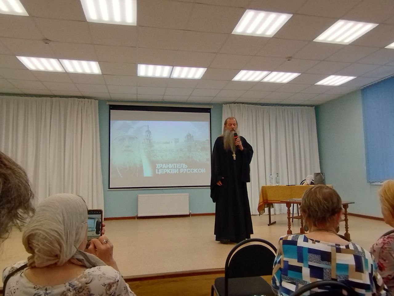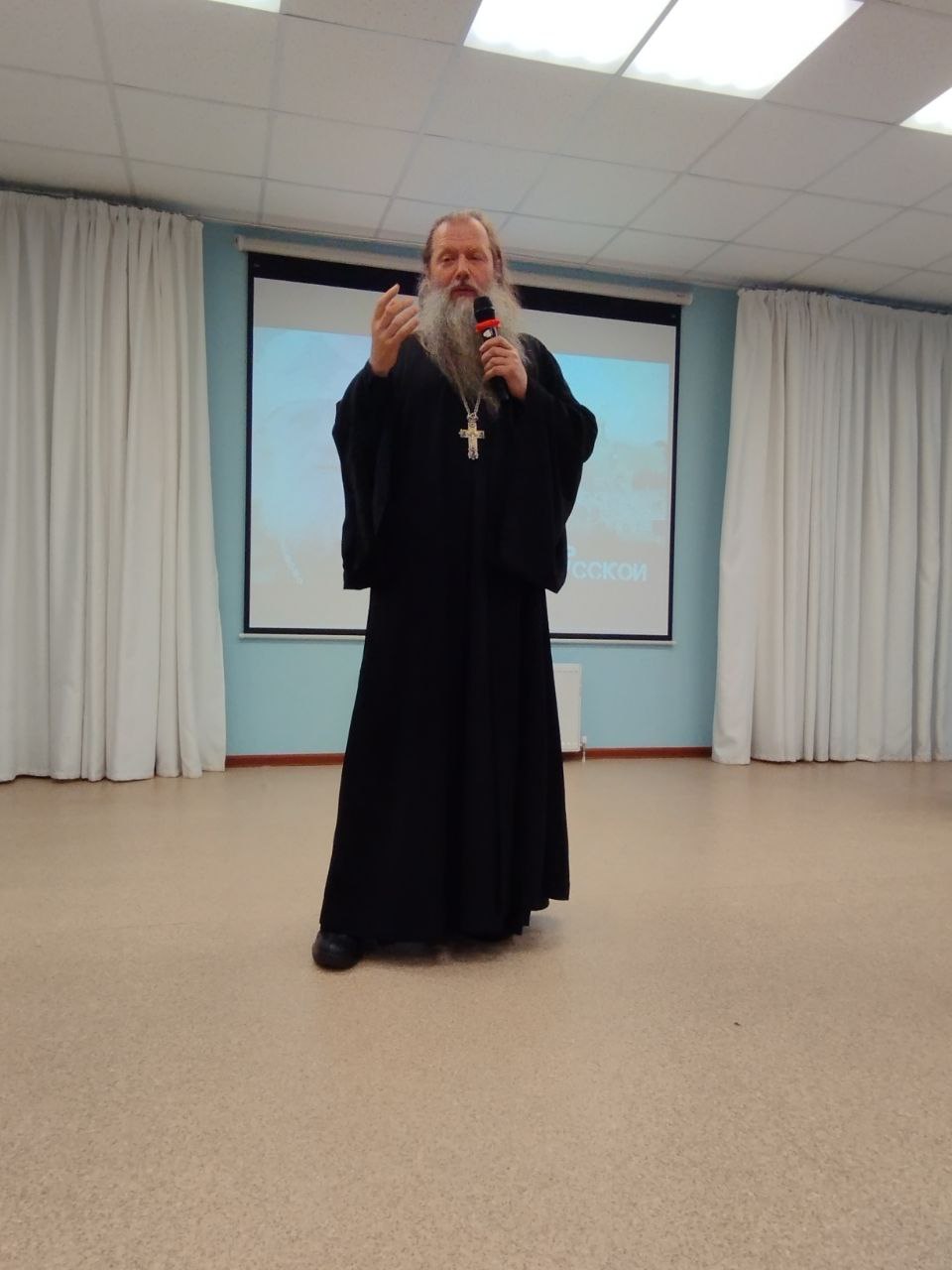 В ходе мероприятия протоиерей Артемий отметил, что его задача – через рассуждение о подвиге святителя Тихона раскрыть человеческие душисобравшихся действию Божией благодати, чтобы воспламенилась искра Божия, тлеющая в глубинах человеческого духа.
