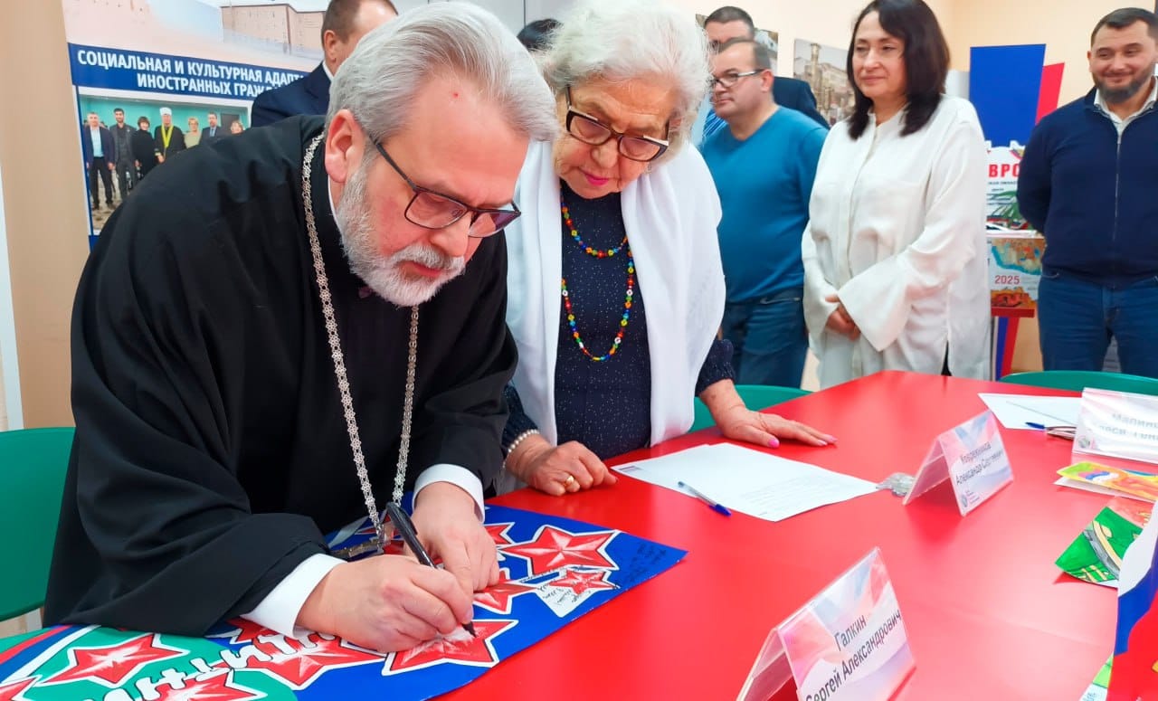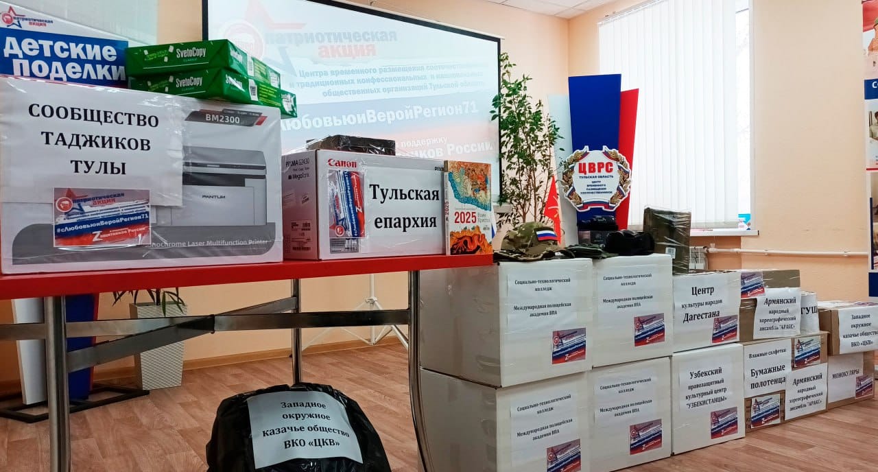 В преддверии Дня защитника Отечества в Центре временного размещения соотечественников собрались представители участников акции «С любовью и верой регион 71»: руководители и члены национальных общественных объединений и религиозных организаций нашей области. Тульскую епархию представил председатель епархиального отдела по благотворительности и социальному служению протоиерей Сергий Резухин.