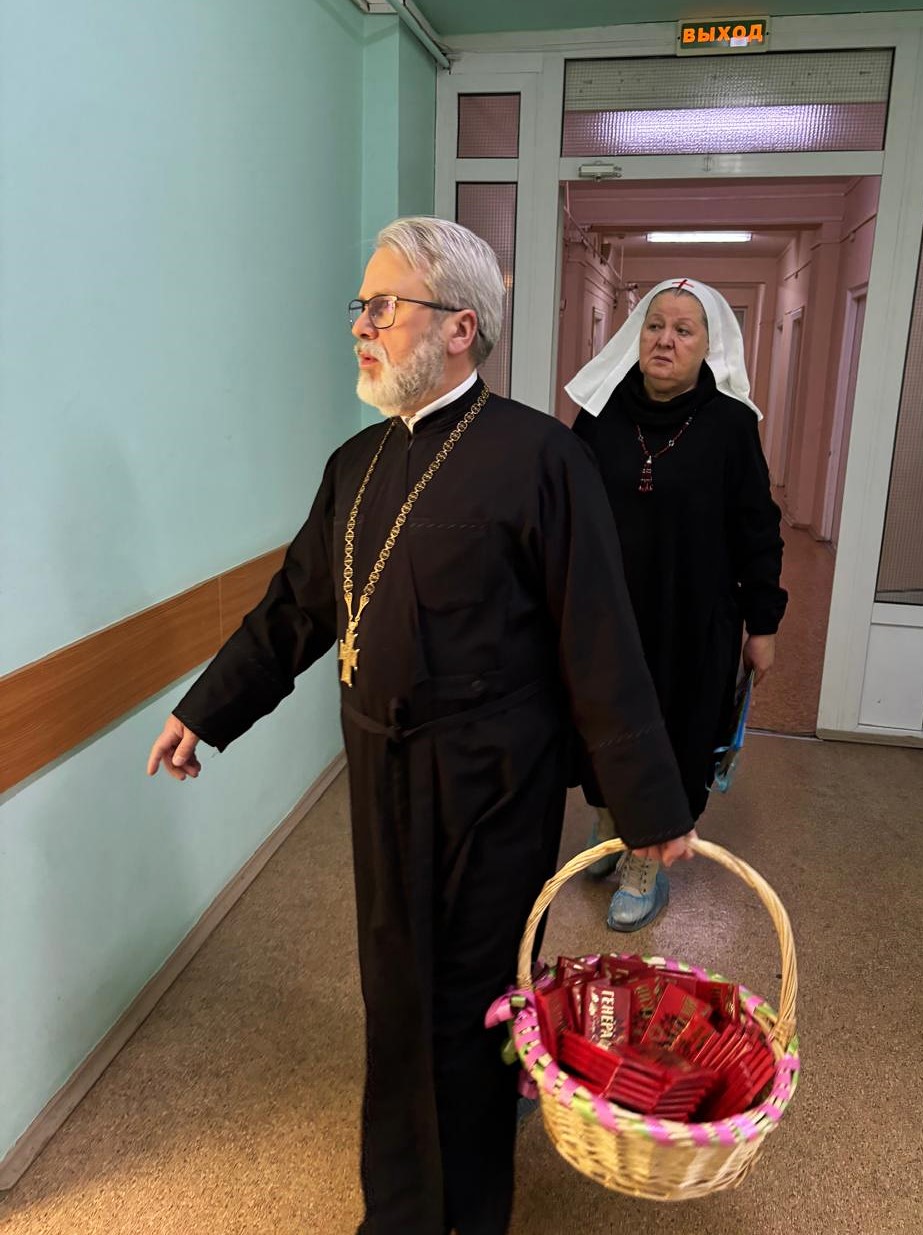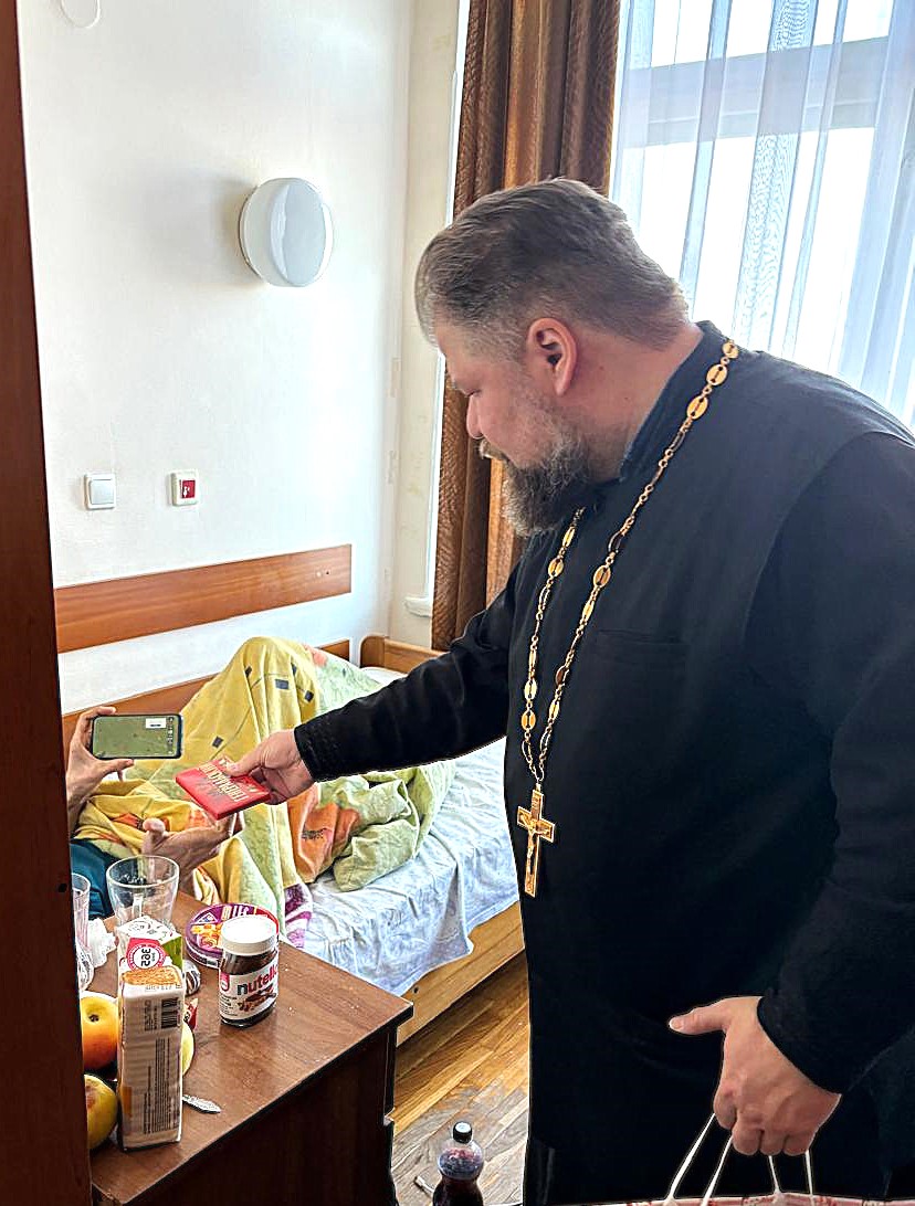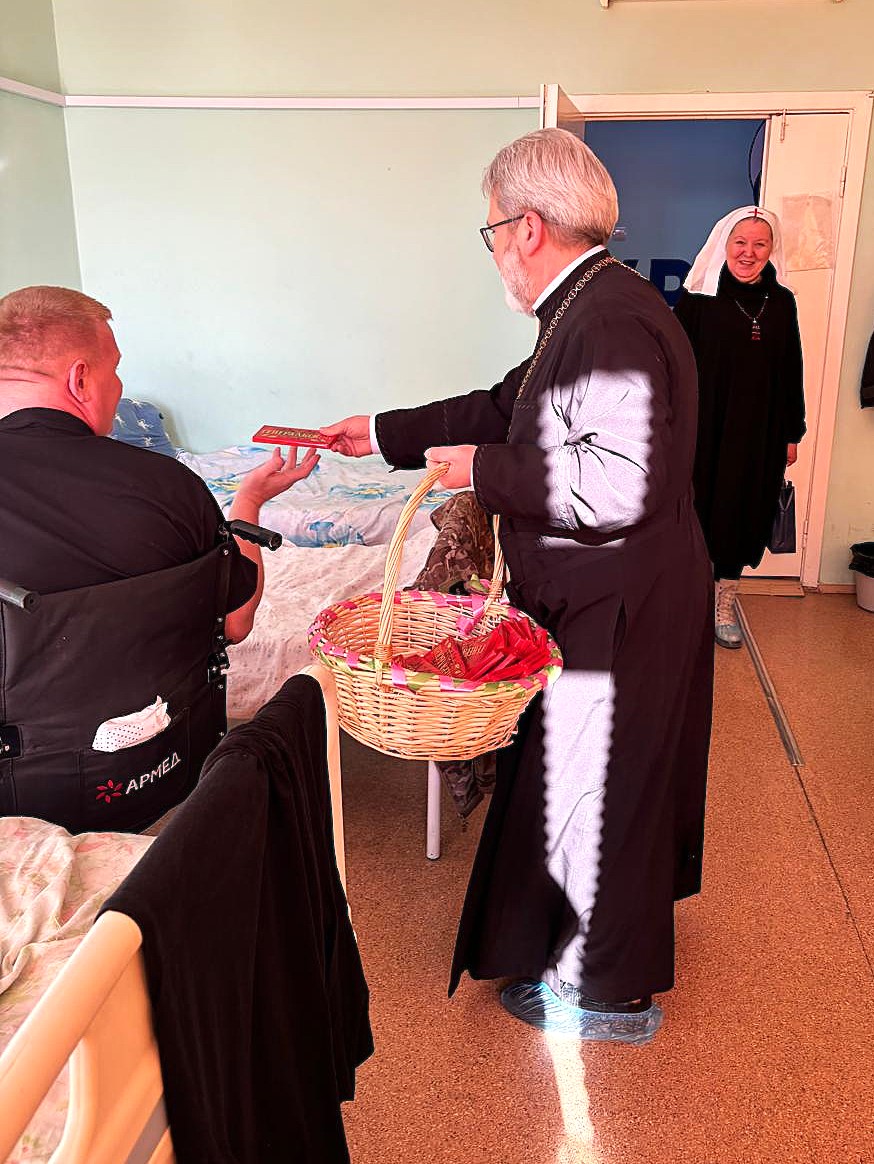 «Нам было приятно и почетно поздравить наших воинов, наших защитников с этим праздником, – отметил председатель епархиального отдела по благотворительности и социальному служению протоиерей Сергий Резухин. – Они – настоящие герои, это их праздник! Нам важно было поздравить каждого лично, порадовать не только сладким гостинцем, а выразить слова благодарности, сказать о том, что мы о них помним, за них молимся, желаем им скорейшего выздоровления и возвращения домой. Их служение – настоящий подвиг: как говорит наш владыка Алексий, «христоподобный» подвиг, ведь он исполнен любви и самоотверженности».