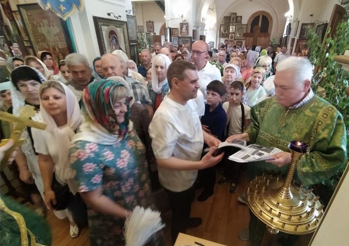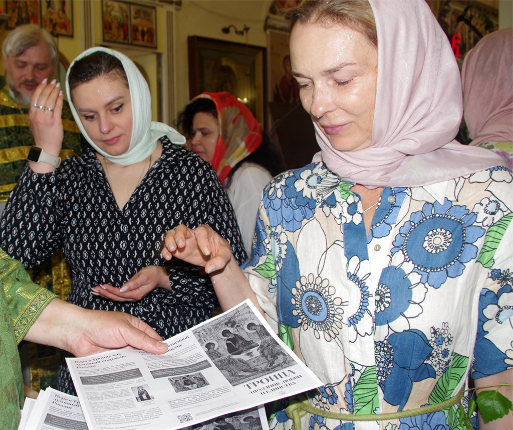Сотрудники Тульского миссионерского отдела, а также волонтеры в благочиниях Тульской епархии в праздник Троицы раздавали прихожанам храмов и прохожим на улицах листовки, в которых рассказывается о сути великого торжества.