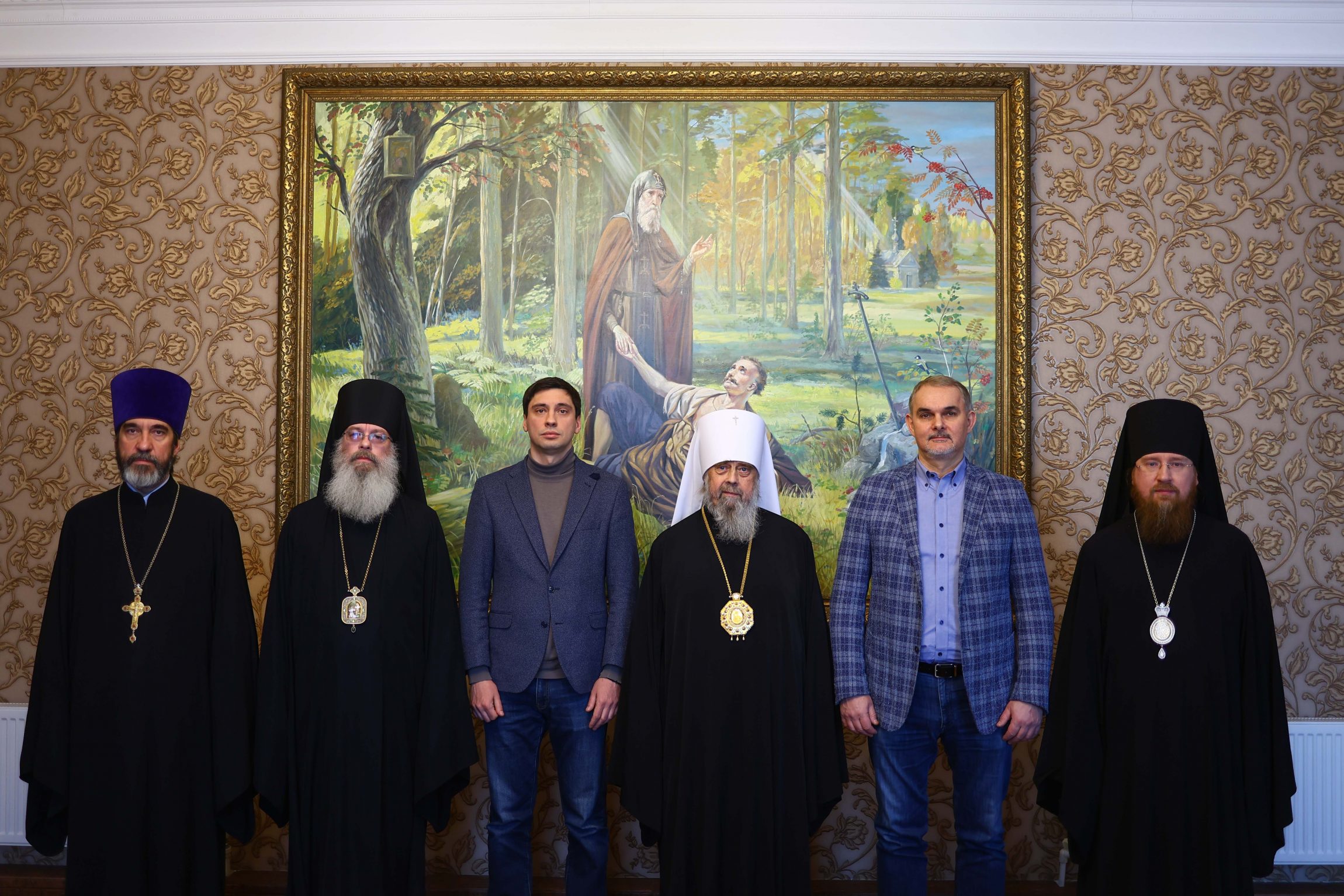 Сопредседатели Тульского регионального отделения ВРНС митрополит Тульский и Ефремовский Алексий, епископ Белевский и Алексинский Серафим провели встречу с членами Президиума Всемирного русского народного собора.