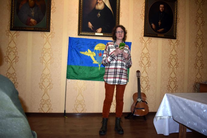 Затем Татьяна Соловьева прочитала стихотворение«Стремление к высоте: Лествица», в котором говорится о духовном восхождении человека к Богу. Путь к спасению труден и полон соблазнов, и преодолеть его возможно только веруя и молясь, чтобы в конце пути обрести утешение и райскую радость:
