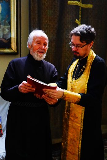 Протоиерей Виктор Тишкин, настоятель храма, поблагодарил руководство и активистов Общества русской словесности за духовно-просветительскую литературу и выразил надежду на благоуспешное продолжение сотрудничества.