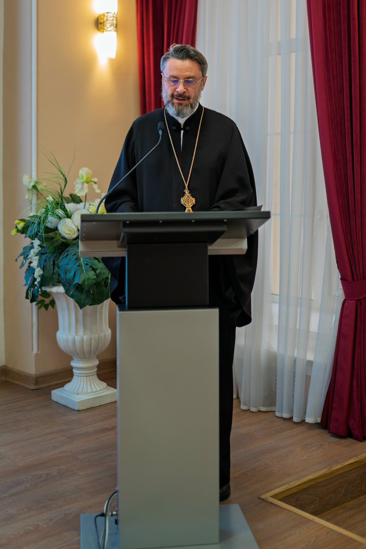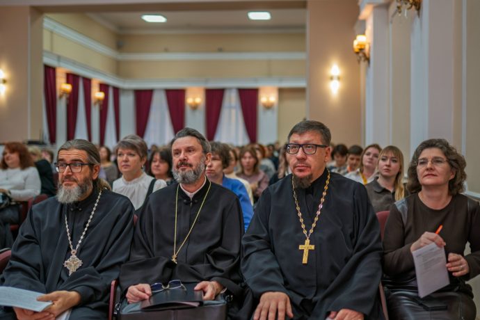 В актовом зале института собрался 131 участник: руководители и сотрудники образовательных отделов Тульской и Белевской епархий, духовенство Тульской митрополии, специалисты органов местного самоуправления, осуществляющие управление в сфере образования, руководители и педагогические работники муниципальных и государственных образовательных организаций, руководители и педагоги воскресных школ. Велась онлайн-трансляция мероприятия.