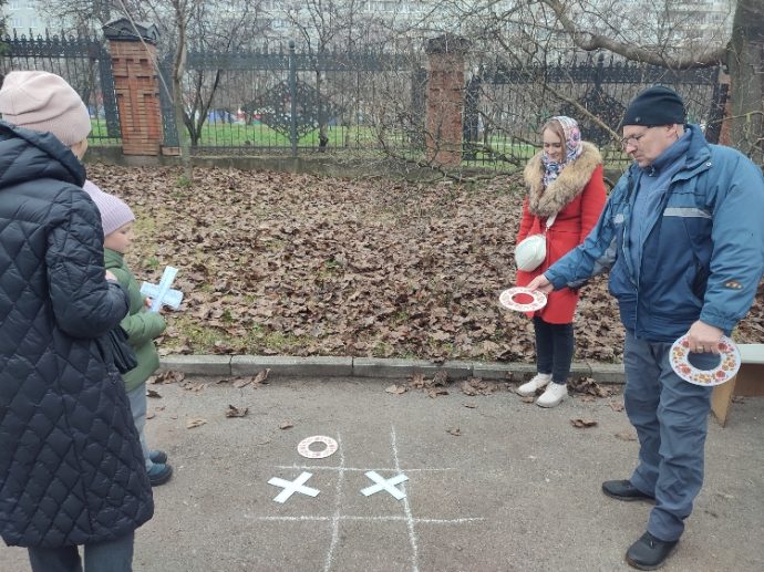 Взрослые участвовали в богатырских состязаниях, ребята играли в городки, бились мешками на брусе, водили хороводы, играли в крестики-нолики на асфальте, стреляли из страйкбольного оружия, писали письма бойцам на фронт. Участники фотографировались в тематической фотозоне, наслаждались концертом с живым исполнением русских песен, а сестры милосердия сестричества во имя преподобного Сергия Радонежского согрели гостей чаем со сладостями.