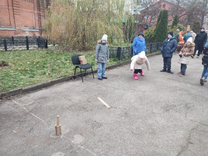 Участница праздника Анна Баринова рассказала о своих победах: «Я была на всех играх, научилась играть в городки, со второй попытки сбила все палочки! Хорошая игра, но нужна ловкость. Ещё я забила один гвоздь до конца и сфотографировалась с оружием».