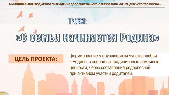 Победительница конкурса в своем проекте подчеркивает: «Начинать знакомство с малой родиной надо с детства, с самого доступного для детей – личности самого ребенка, жизни его семьи. Участники проекта выразили желание продолжать традиции своих предков, почувствовали гордость за своих родных, о которых раньше практически ничего не знали, захотели исследовать и дальше свои «корни». В процессе взаимодействия, дети и родители почувствовали не только тёплую атмосферу единения, но и увидели отражение внутреннего мира каждой семьи. Более того, совместная работа объединила всех в одну большую семью, с общими ценностями и жизненными ориентирами, способствующими формированию нравственно-здорового поколения, чтущего историю и традиции Родины через призму своего рода».