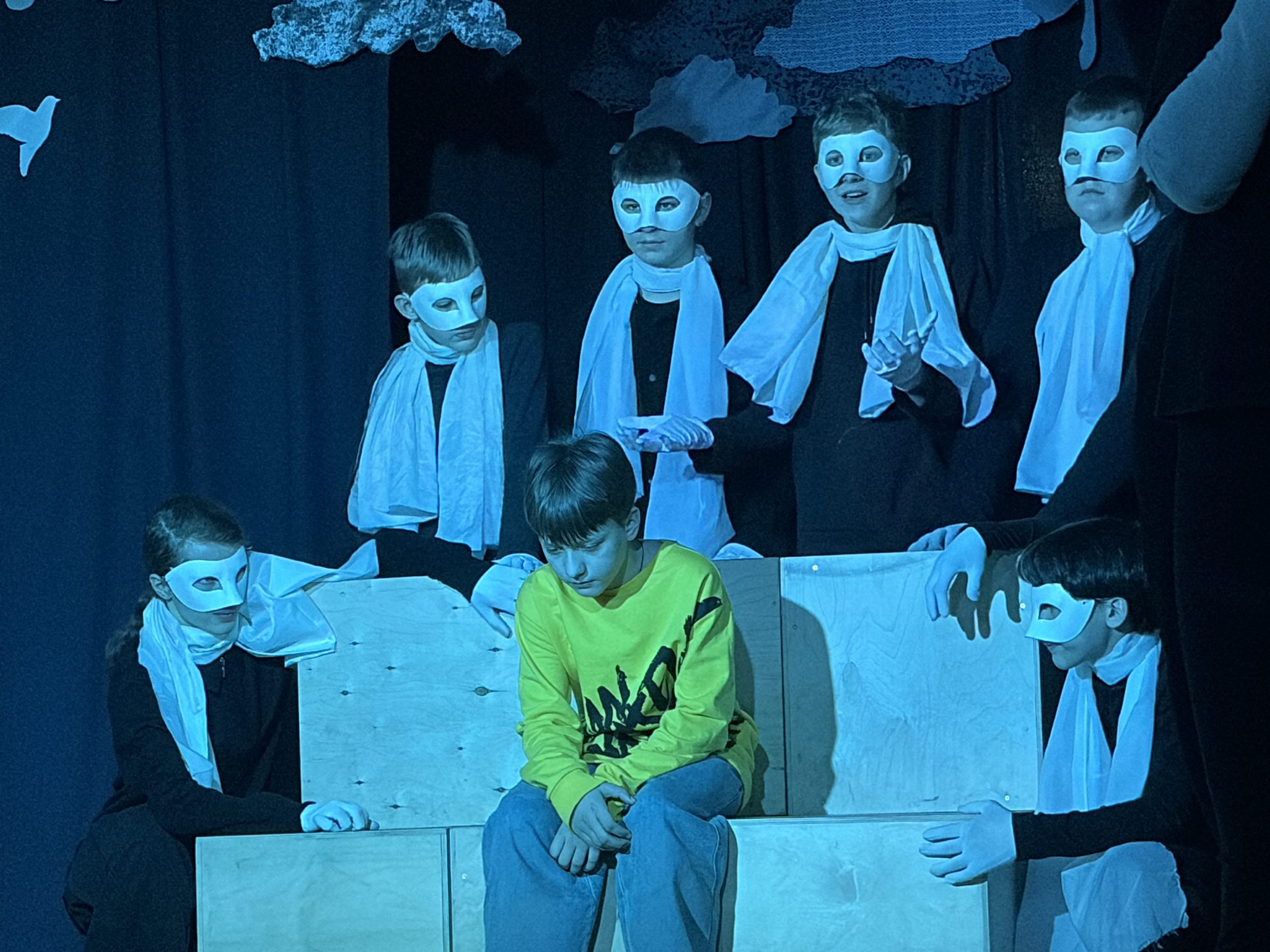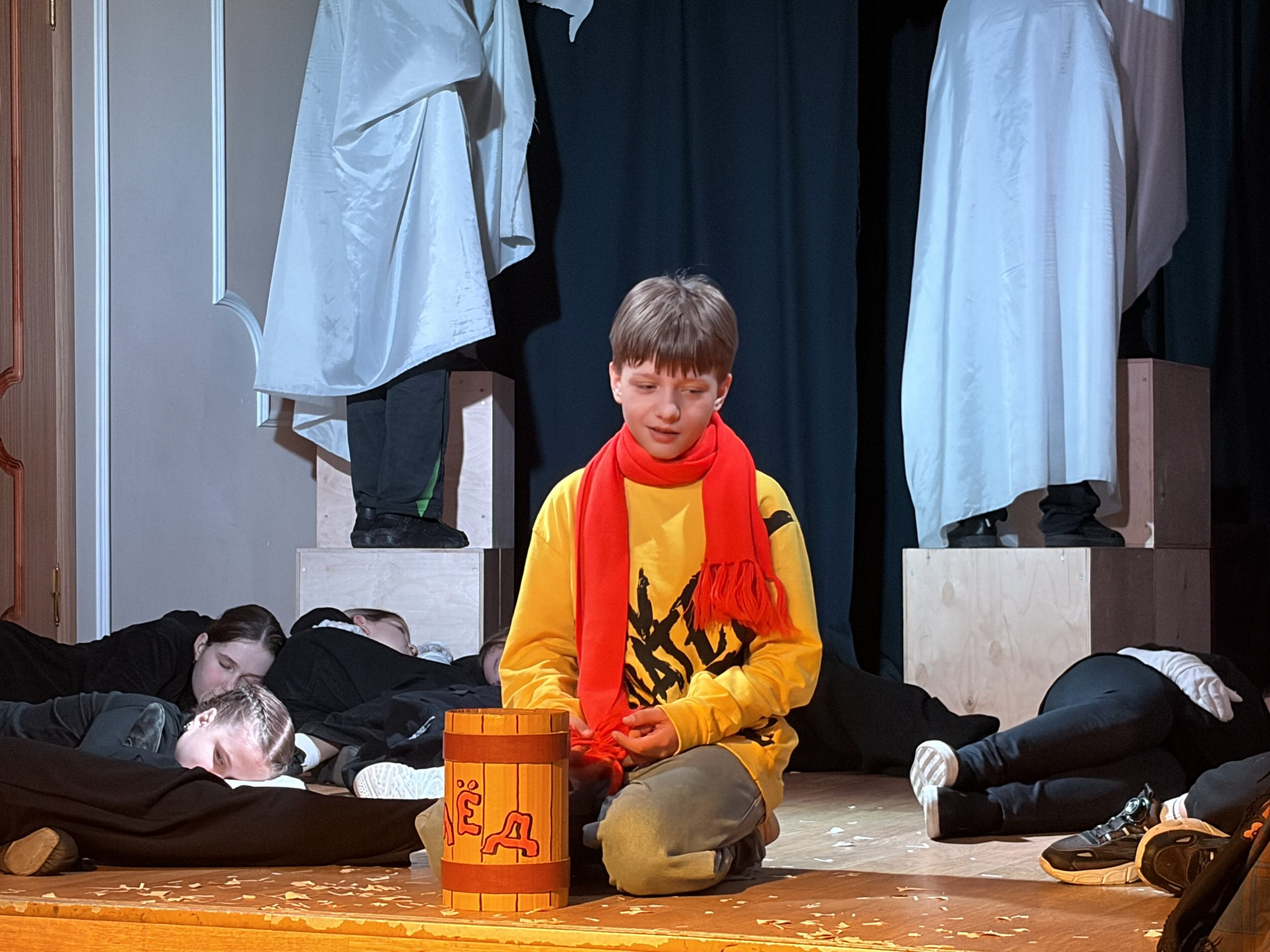 В спектакле задействованы 22 актера в возрасте от 7 до 18 лет. Для многих это первый серьезный опыт на сцене, но каждый старался прожить свою роль искренне и трепетно.