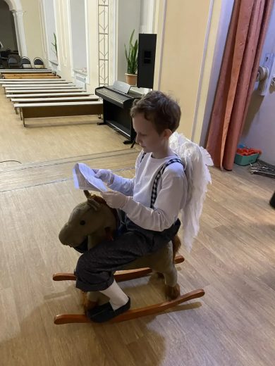 «Наши спектакли благотворительные, все создается руками удивительных людей. Художественное оформление сцены подготовили талантливые художницы Анна и Мария Симоновы. Костюмами и реквизитом занимались бессменный костюмер Ксения Никольская, а также родители артистов: Евгения, Алексей и Анна Клоповы, Анна Забелина, Виктор Петрухин, Николай Арбузов и Наталья Гребенщикова. Огромную помощь в изготовлении реквизита оказали и сами старшие актеры: Сергей Ярасов, Алексей Колесников, Никита Кузьмин, Сергей Королев, Артём Баканов, Артём Сибирков, Анастасия Гранадёрова, Софья Гребенщикова, Надежда Новикова и Дарья Матюхина. Особая благодарность Никите Кузьмину за создание видеоролика-трейлера. За порядок в зрительном зале отвечала Олеся Сорокина, прически актерам делала Анна Забелина. И, конечно, низкий поклон тем, кто кормил наших артистов – Наталье Серебряковой и Ольге Петрухиной, которые готовили горячее питание, ведь играть приходилось по два-три спектакля в день. Я очень рада, что в этот раз многие актёры помогали делать реквизит, снимали кулисы, разбирали задник. Без этой командной работы, без поддержки настоятеля отца Вячеслава Ковалевского и всех сотрудников храма ничего бы не получилось».