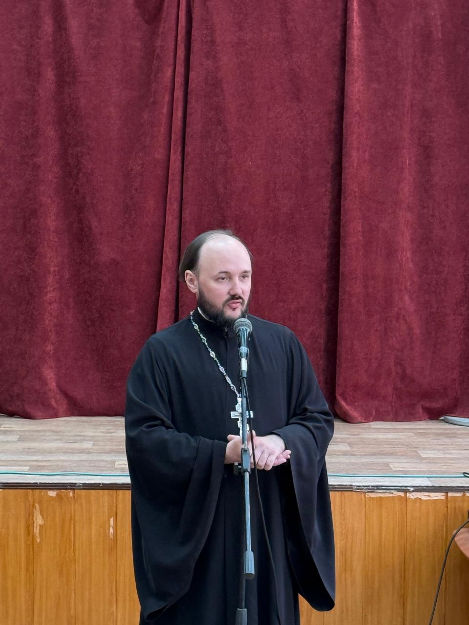 Созвучным было и обращение к присутствующим диакона Владимира Мартынова, руководителя епархиального Молодежного добровольческого центра, который прежде всего выразил благодарность отцу-благочинному и администрации техникума за возможность творческой реализации и диалога со зрительской аудиторией: «Само название нашей постановки, казалось бы, говорит о многом, однако ставит и глубокие вопросы, — сказал отец Владимир далее. — Спектакль состоит из нескольких зарисовок, в них изложены реальные события. А через истории героев повествования сквозной линией проходит главный вопрос: что же такое существует и таится в хрупком человеческом сосуде, что в одно мгновение делает человека способным преодолеть самый жуткий животный страх — страх смерти? Ради чего человек готов сознательно отдать свою жизнь? Надеюсь, что ответы на эти вопросы мы найдем сообща по завершении выступления».