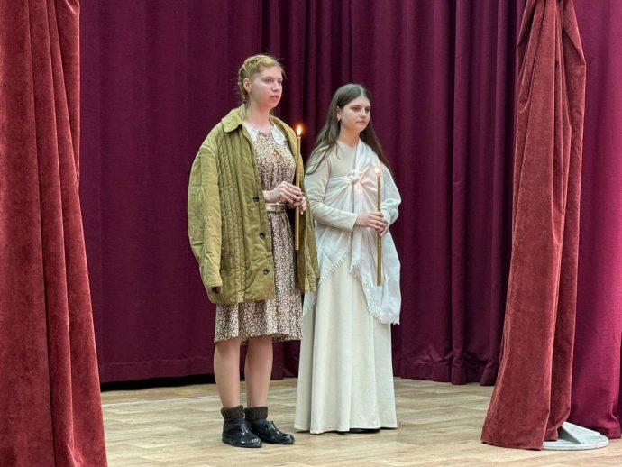 Выступление активистов Молодежного добровольческого центра состоялось по инициативе руководства учебного заведения и благочинного Ефремовского округа иерея Вячеслава Слепнева, который приветствовал гостей и многочисленных зрителей, студентов и преподавателей техникума: «Мы рады принимать у себя в Ефремове юных актеров, творчество которых всегда наполнено высоким духовным содержанием и призывает задуматься о смысле жизни человека, — произнес отец Вячеслав. — Нам предстоит увидеть спектакль о том, как люди в разные исторические эпохи, в не похожих, но ставящих героев в ситуацию нравственного и духовного выбора, обстоятельствах действенно выражают свою любовь к ближнему.