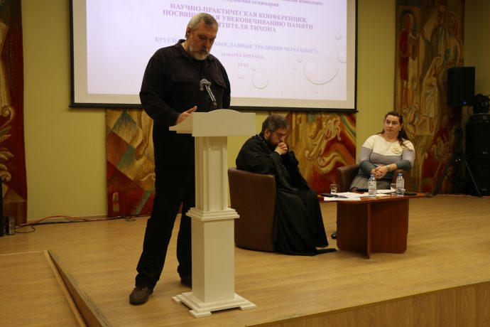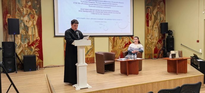 Прежде чем обратиться непосредственно к своему исследованию, отец Николай передал участникам события приветствия и пожелания благополучной работы от ректора Тульской духовной семинарии иерея Льва Махно.