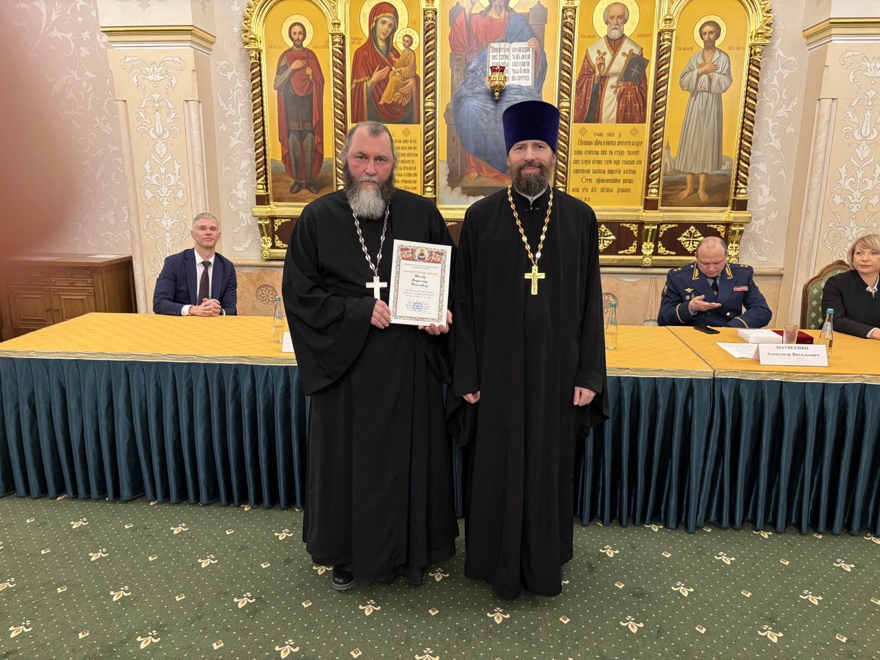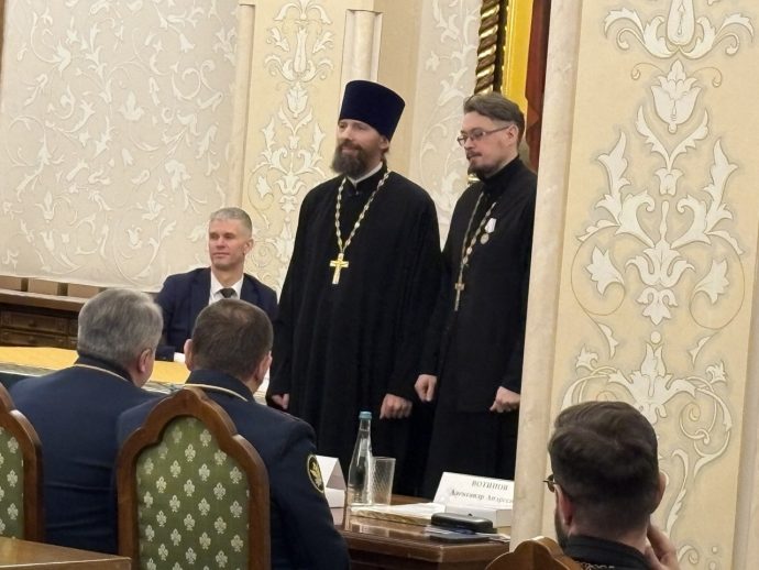 Затем ряду тюремных священнослужителей были вручены награды Синодального отдела по тюремному служению.