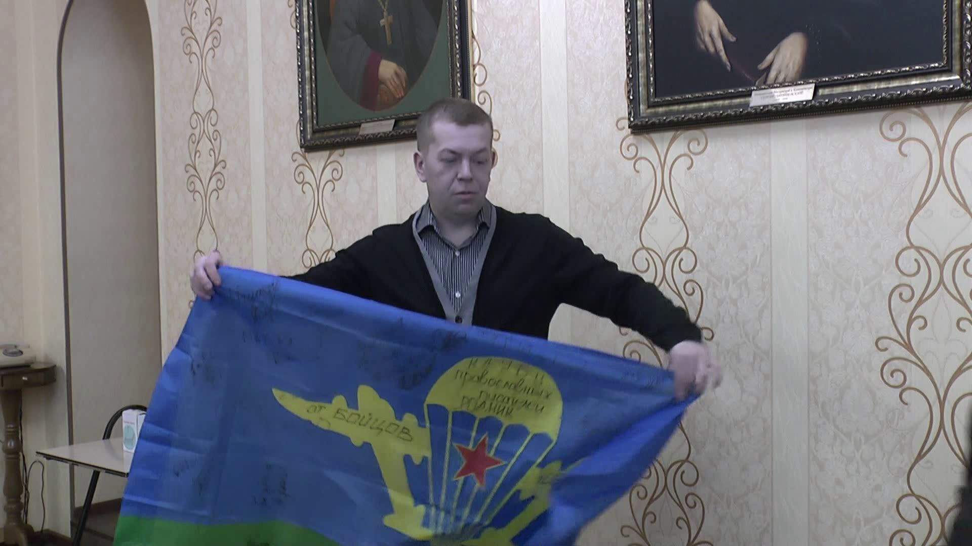 Именно «что надо» делал в мирной жизни, а теперь делает на СВО настоящий мужчина – нежданный, но бесценный гость «Родника», получивший отпуск, открывший лицо и всего себя, Константин Викторович Алексеенко, любимый Клубом поэт с позывным Учитель. Выпускник гимназии № 4 города Тулы, работавший в ней же после окончания исторического факультета ТГПУ им. Л.Н. Толстого, он и ранее сотрудничал с «Родником», несколько писем и своих стихов отправил руководителю Владимиру Алешину с фронта – и вот теперь очная встреча. Гость не читал свои произведения, а словно купался в мирной атмосфере тихого литературного вечера, которую создали благодарные родниковцы, вручив герою небольшую библиотечку своих книг. Об СВО напомнил словно пахнущий порохом флаг подразделения 106-й дивизии ВДВ, привезенный из-за ленточки в подарок «Роднику».