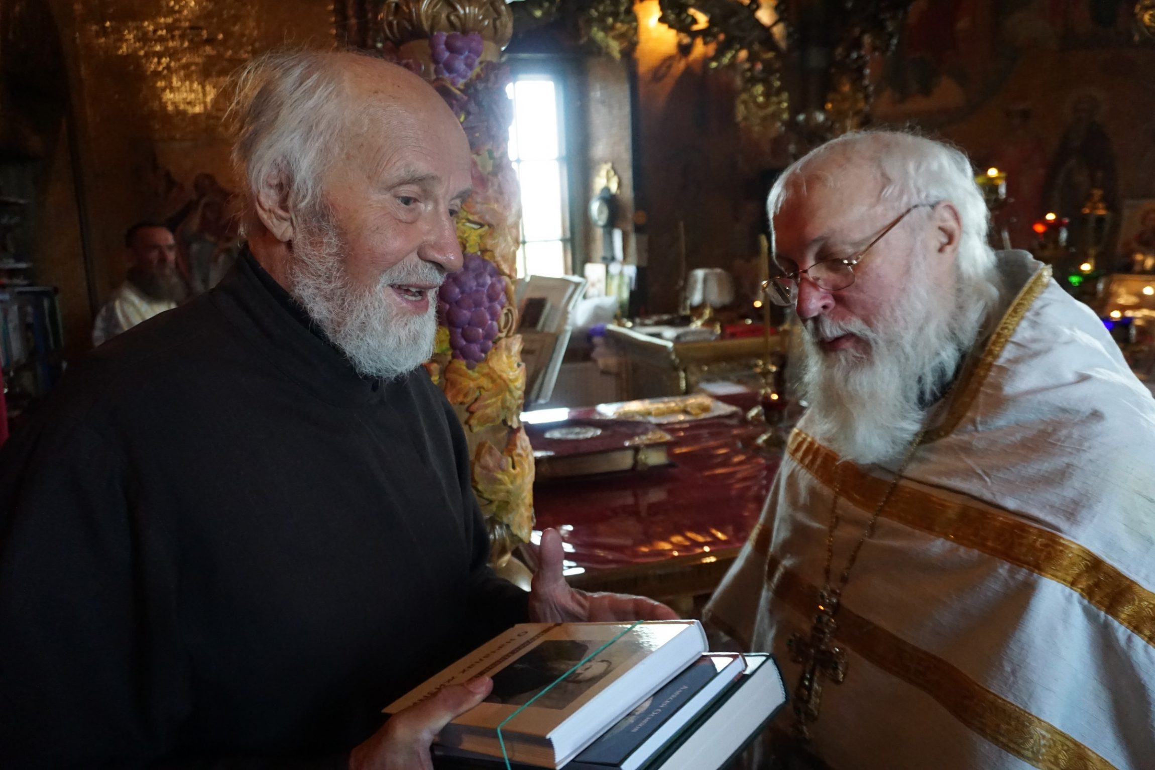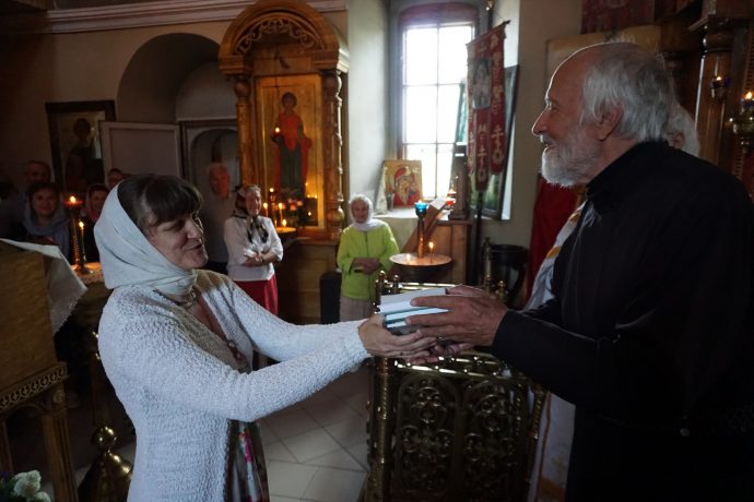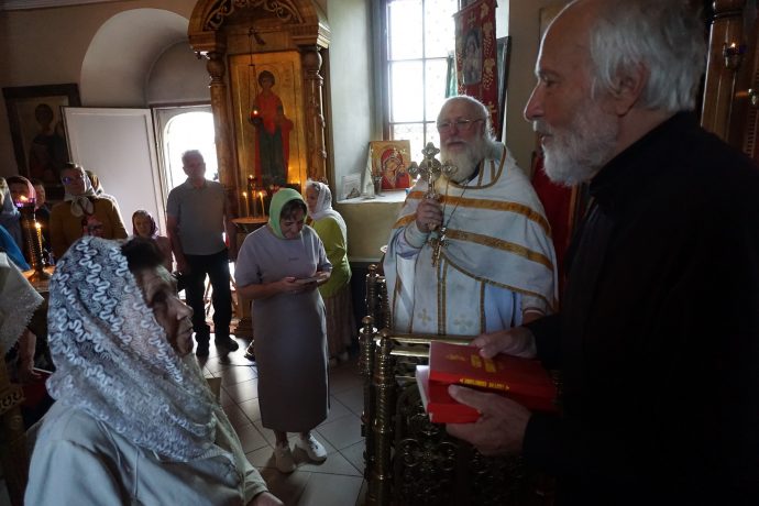 Протоиерей Олег Алейников, настоятель храма, поблагодарил руководство и активистов Общества русской словесности за духовно-просветительскую литературу и выразил надежду на благоуспешное продолжение соработничества.