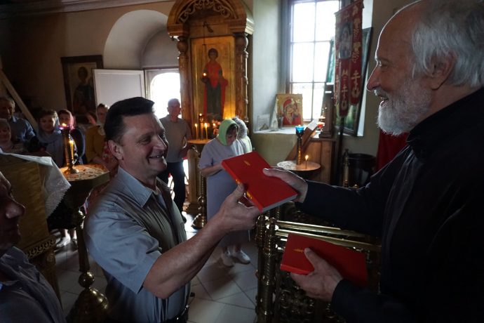 По окончании праздничной Божественной литургии в Богоявленском храме города Венёва прошло просветительское мероприятие с вручением церковной литературы духовенству, причту и причастникам, организованное совместными усилиями Тульского отделения Общества русской словесности и Веневского викариатства.