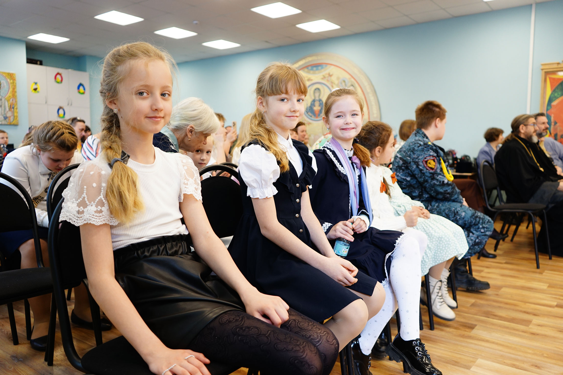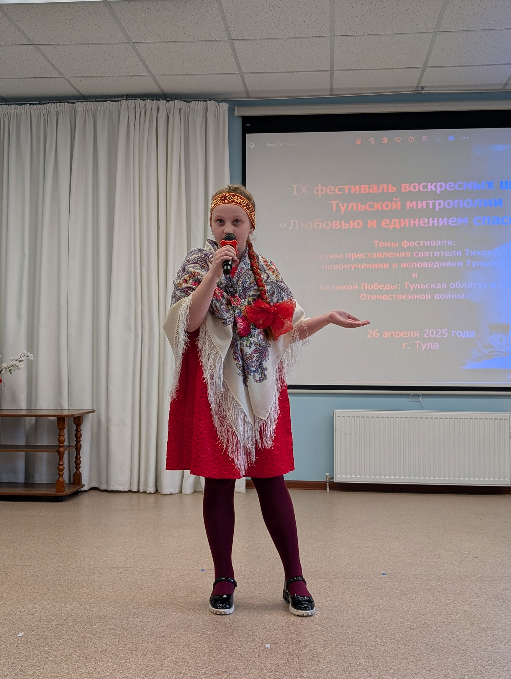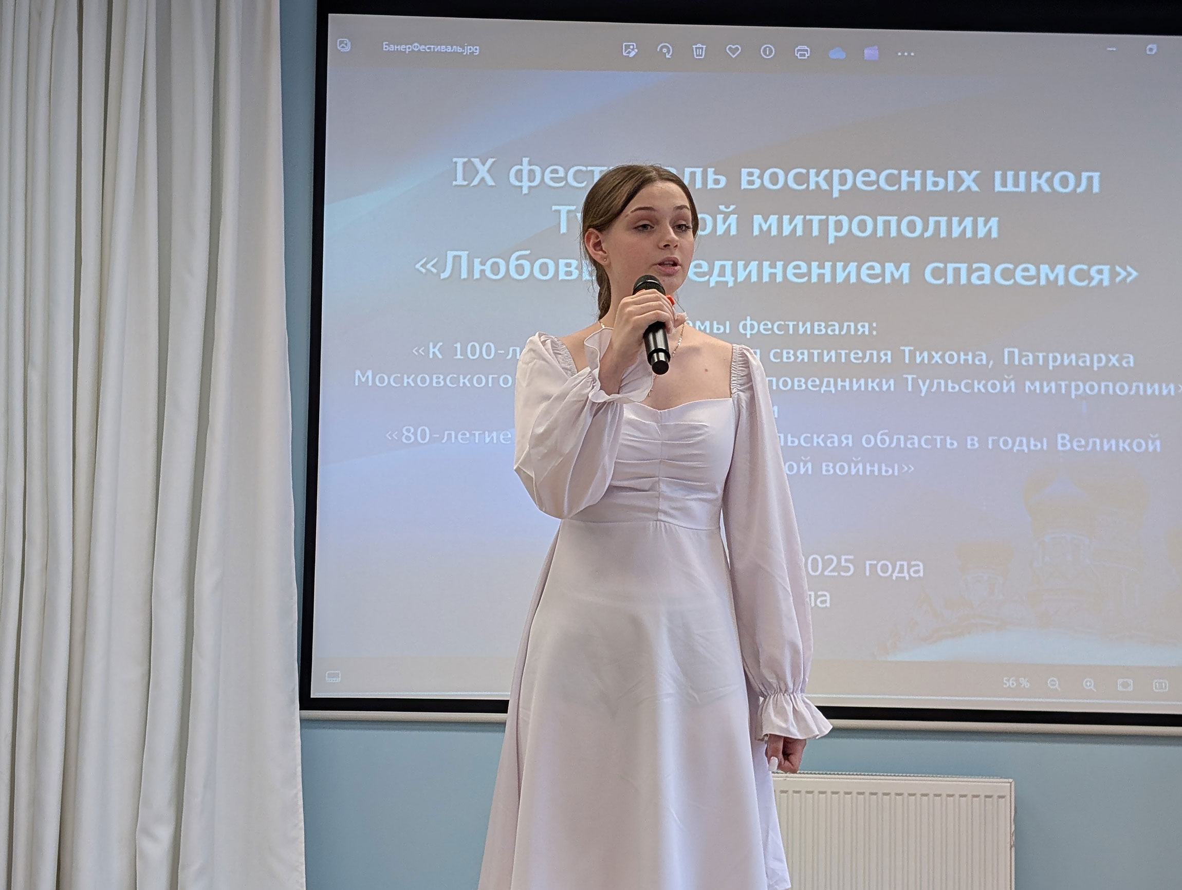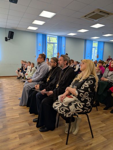 В актовом зале Духовно-просветительского центра имени священномученика Онисима, епископа Тульского, при храме святого великомученика Димитрия Солунского собрались воспитанники воскресных школ, их родители и педагоги. Перед началом мероприятия все желающие смогли ознакомиться с экспозицией мемориального кабинета митрополита Серапиона.