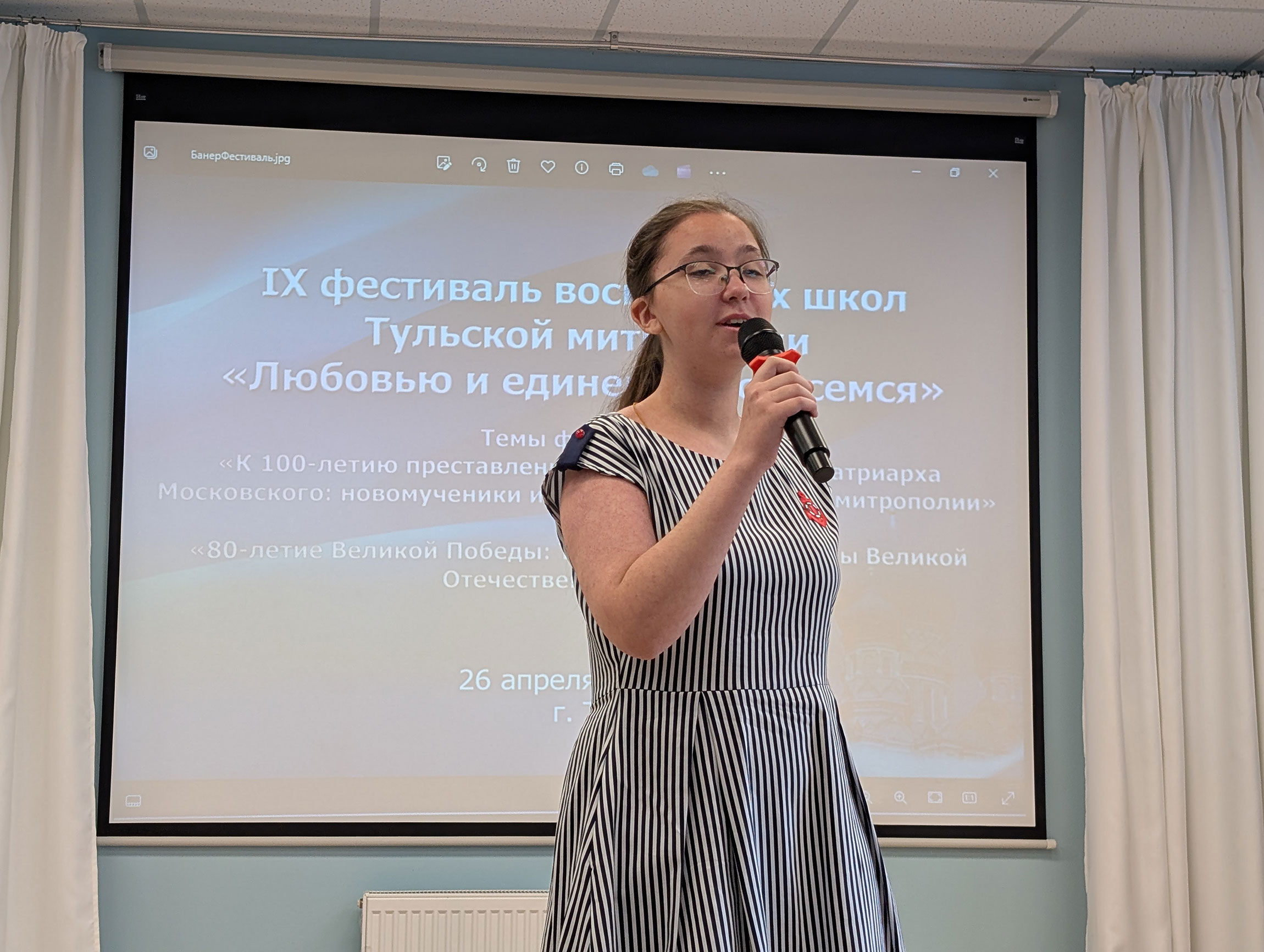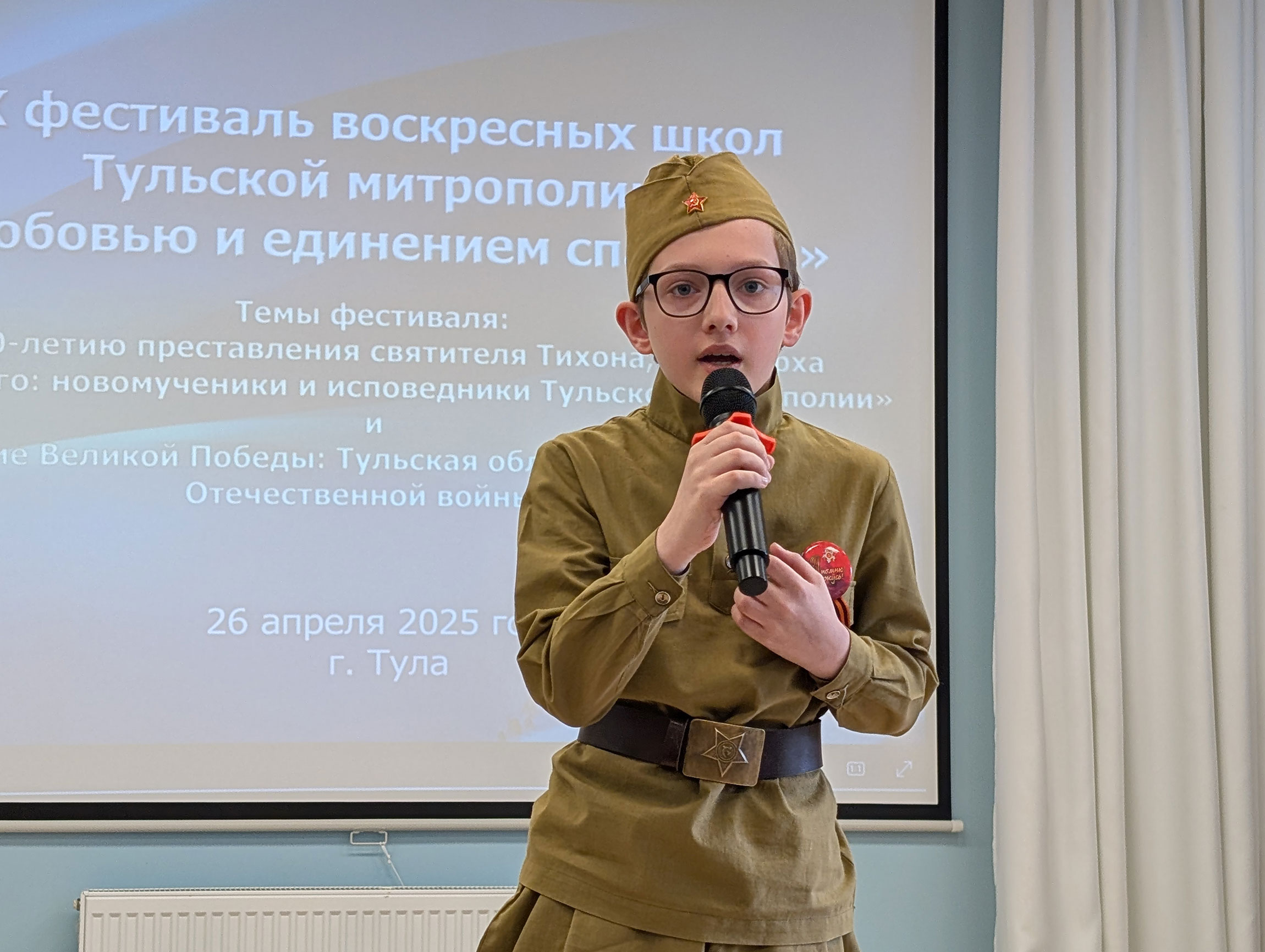 В начале коллектив воспитанников Свято-Спасского храма города Тулы показал театрализованную сценку «Героическая оборона Тулы. Дорога к Пасхе», а модератор церемонии награждения, заместитель председателя тульского епархиального образовательного отдела иерей Алексий Иванов отметил, что только в заключительном этапе фестиваля приняли участие более 200 учащихся воскресных школ Тульской митрополии, представивших работы в соответствие с 2 основными темами: «К 100-летию преставления святителя Тихона, Патриарха Московского: новомученики и исповедники Тульской митрополии» и «80-летие Великой Победы: Тульская область в годы Великой Отечественной войны».