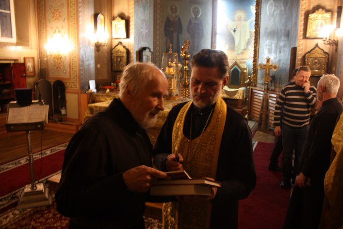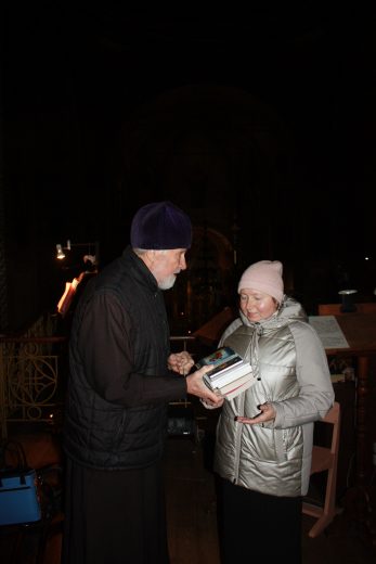 Протоиерей Вячеслав Ковалевский, настоятель храма,поблагодарил руководство и активистов Общества русской словесности за духовно-просветительскую литературу и выразил надежду на благоуспешное продолжение сотрудничества.