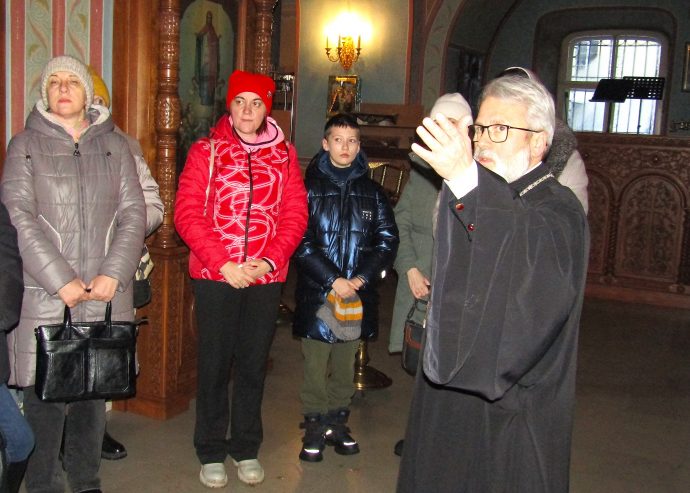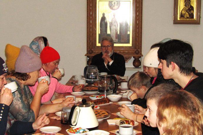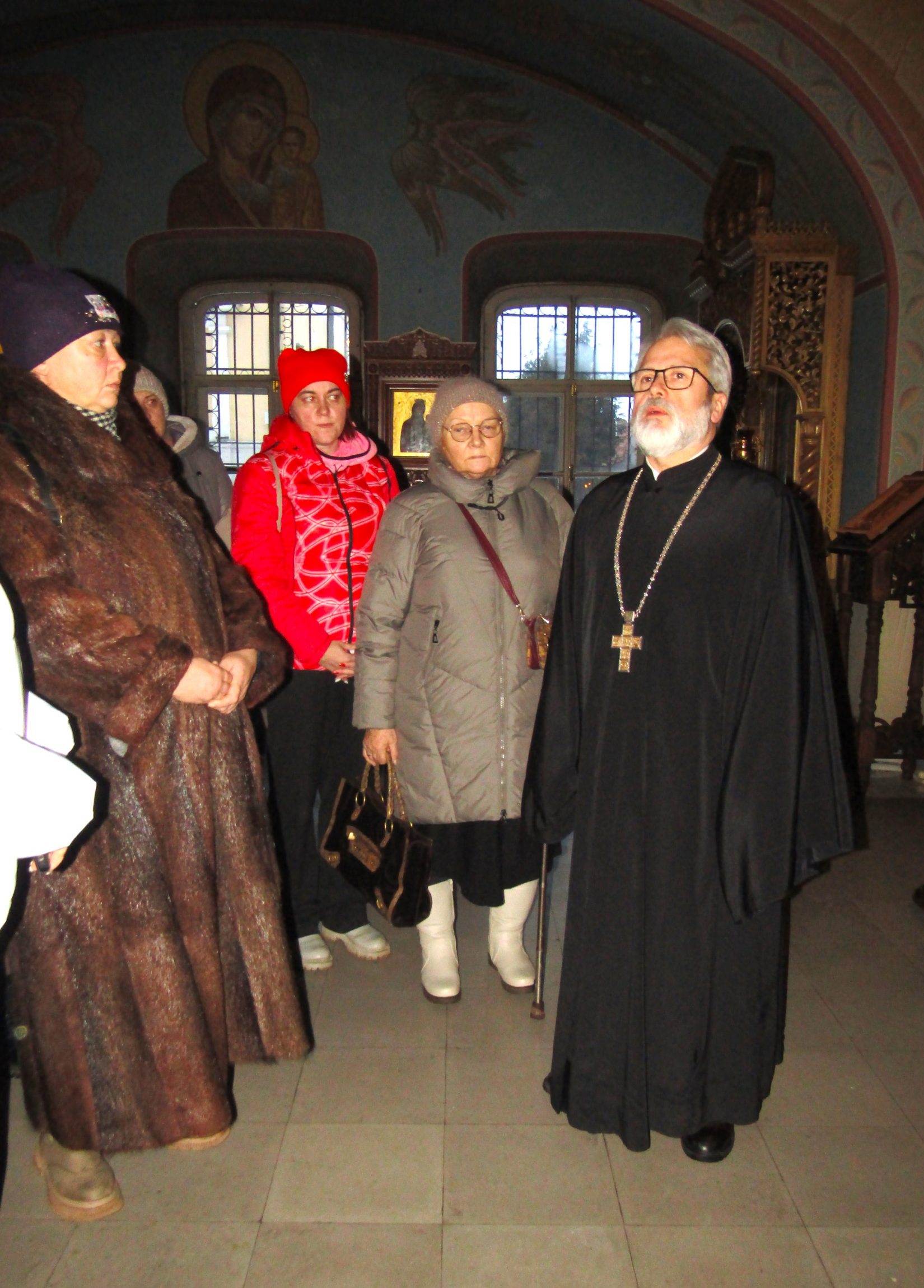 По завершении знакомства с историей и святынями Успенского собора состоялась духовная беседа за чаепитием, во время которой председатель епархиального отдела по благотворительности рассказал собравшимся о грядущем празднике Рождества, о том, как верующие готовятся к этому празднику и встречают его.