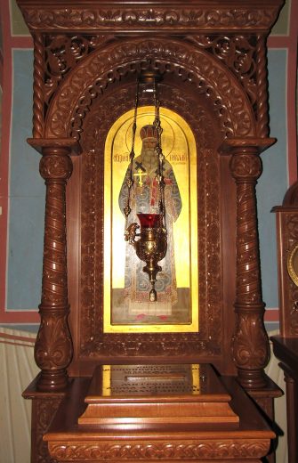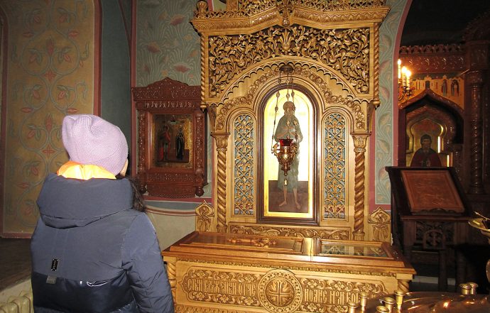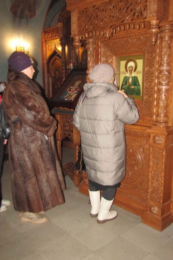Отец Сергий рассказал гостям об Иоанне Тульском, Христа ради юродивом, чьи мощи находятся в раке слева от алтаря, о святой старице Матроне Московской, которая родилась на Тульской земле. Икона с частицами ее мощей также находится в Успенском соборе.