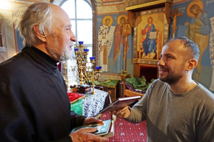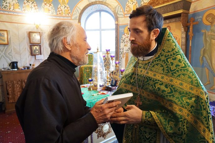 Иерей Дионисий Малякин, настоятель храма Димитрия Донского, поблагодарил руководство и активистов Общества русской словесности за духовно-просветительскую литературу и выразил надежду на благоуспешное продолжение сотрудничества.
