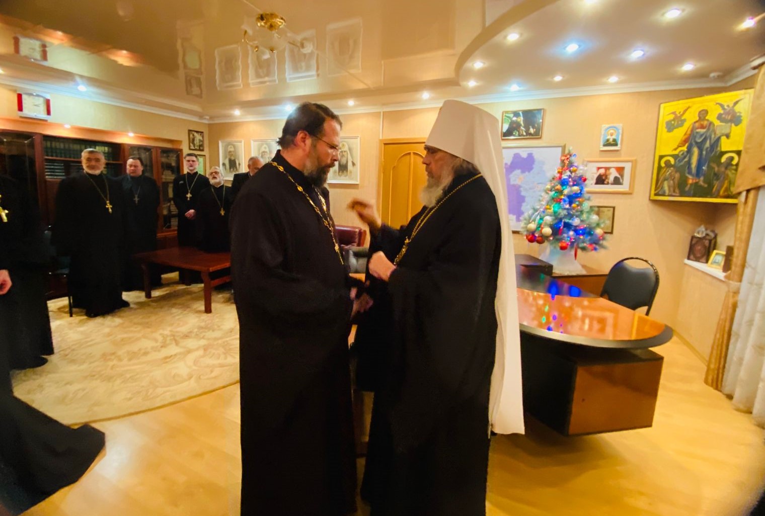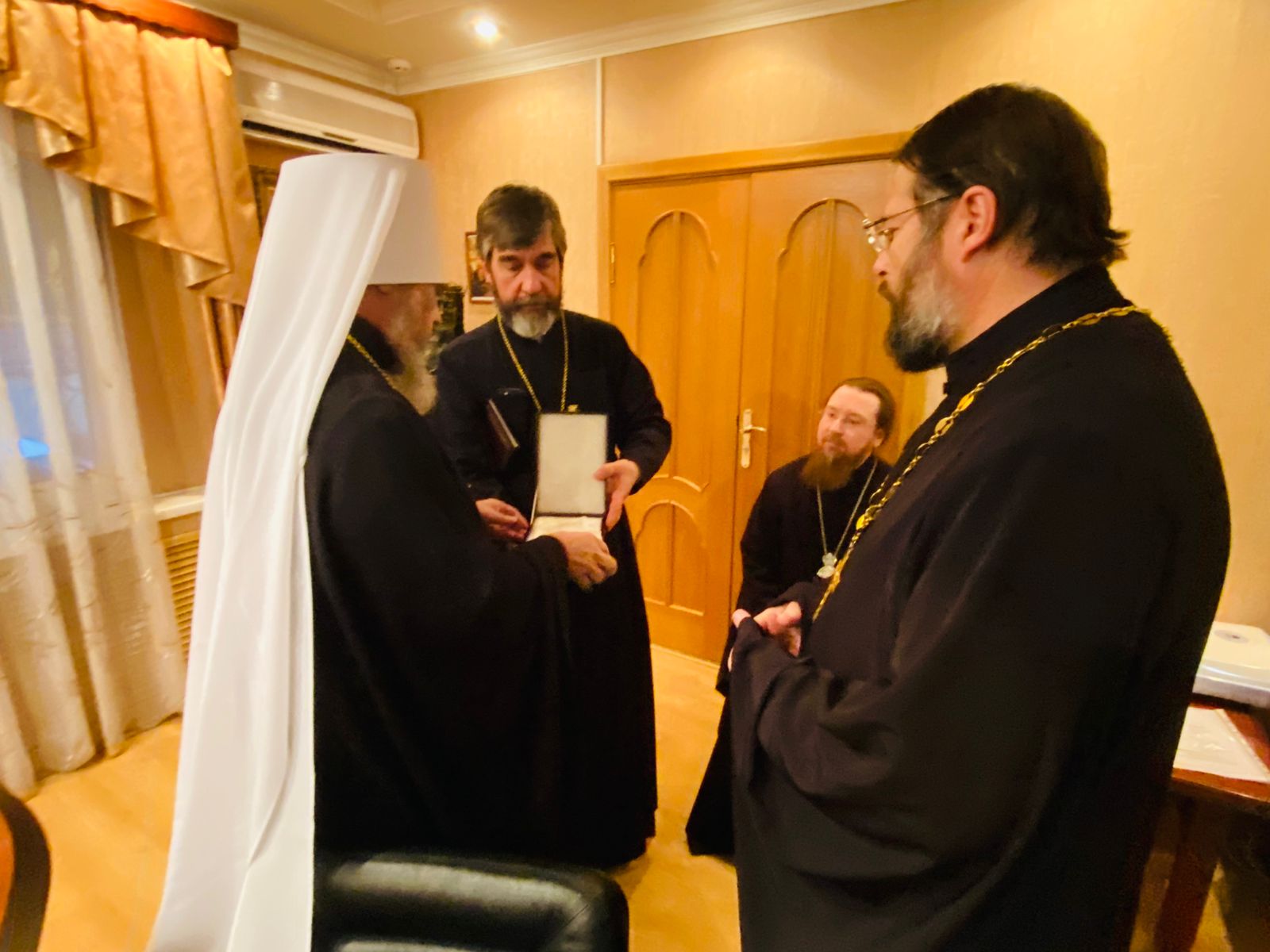 Митрополит Тульский и Ефремовский Алексий вручил сотрудникам епархиального отдела по взаимодействию с Вооруженными Силами и правоохранительными учреждениями, осуществляющим пастырское окормление военнослужащих в зоне СВО, награды Патриарха Московского и всея Руси Кирилла.
