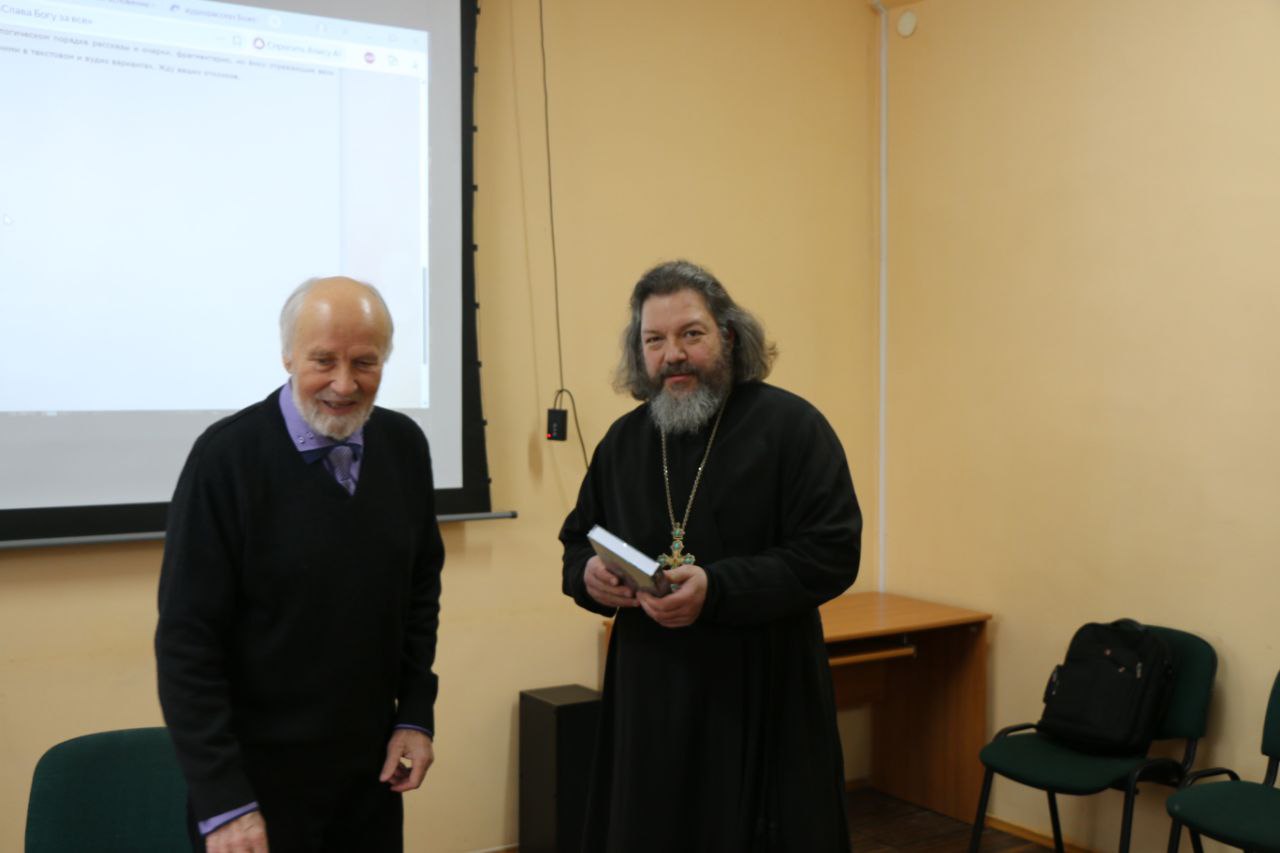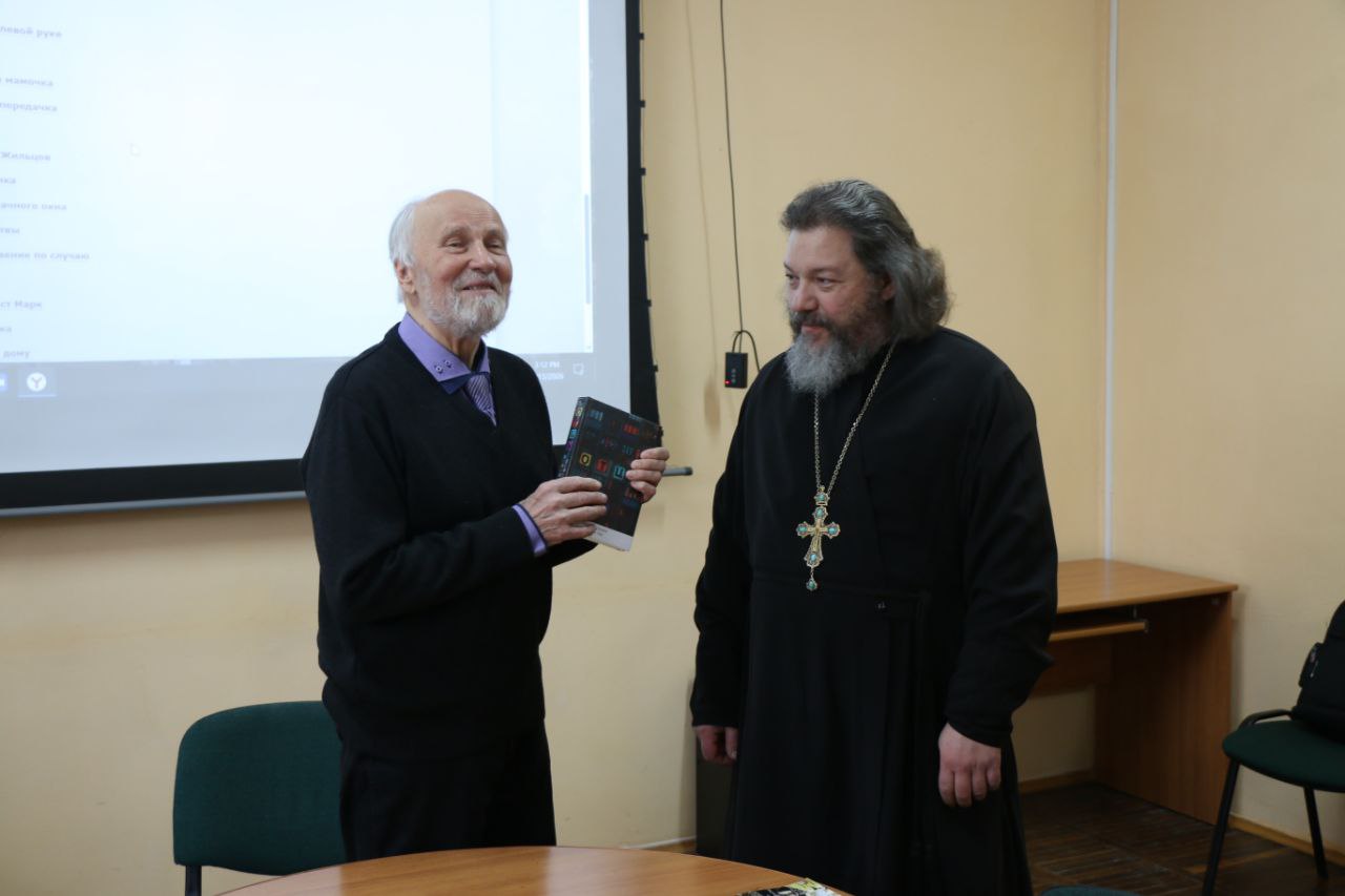 Протоиерей Михаил Ключарёв, проректор по воспитательной работе Тульской духовной семинарии, поблагодарил Олега Михайловича за назидательное общение и подаренные издания.