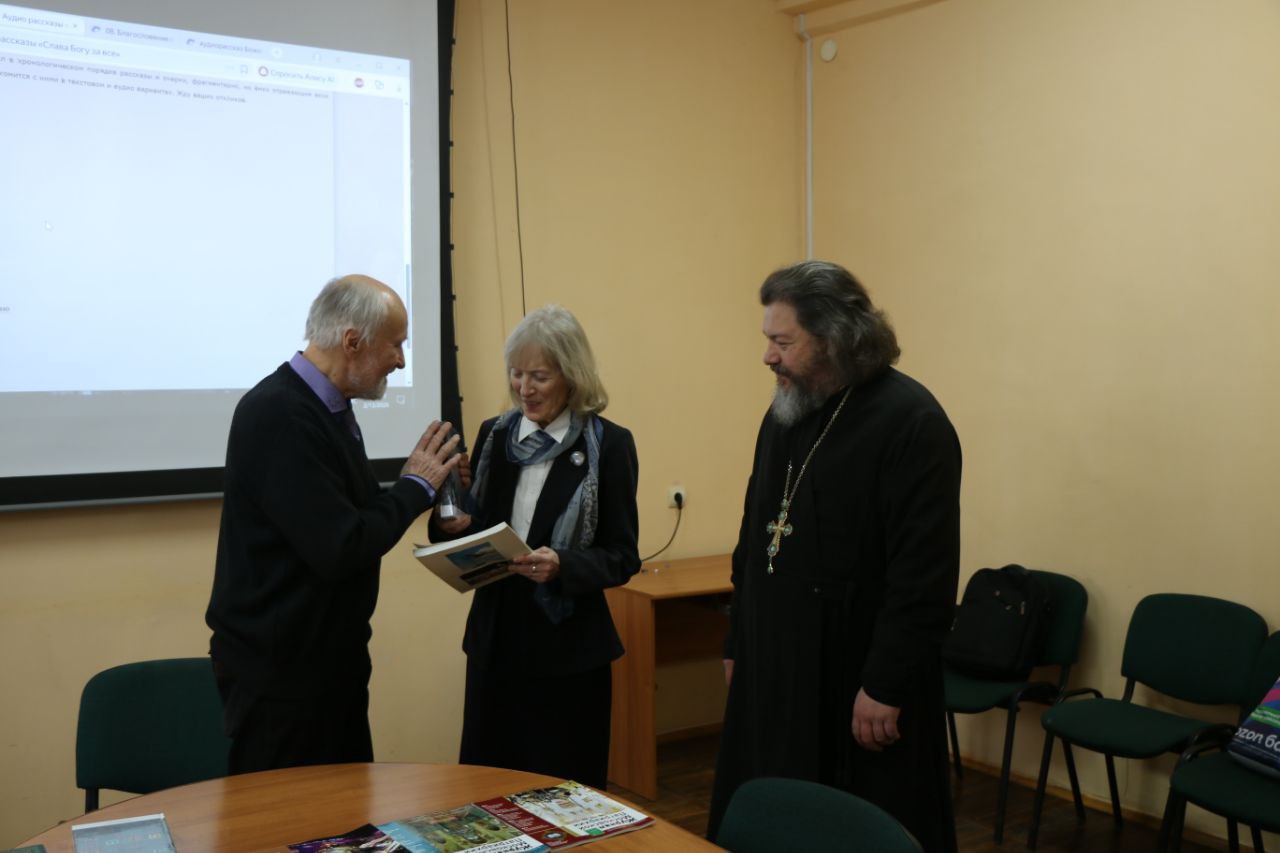 По завершении общения семинаристы и присутствующие преподаватели получили в подарок от Общества русской словесности журналы и книги.