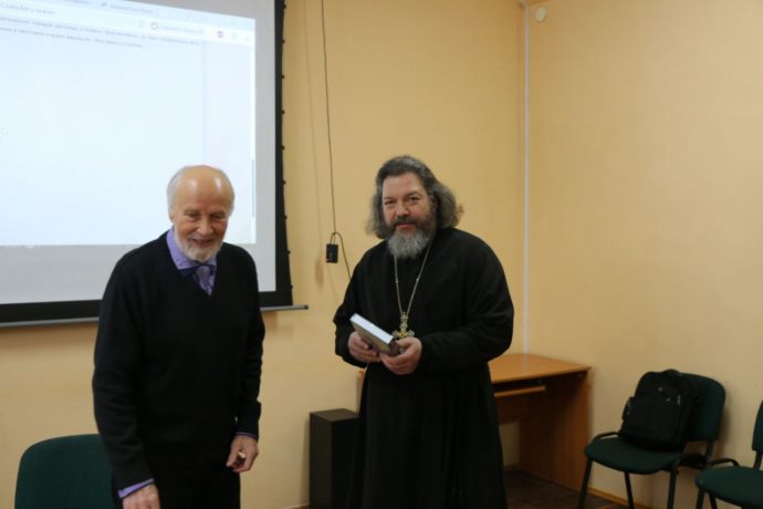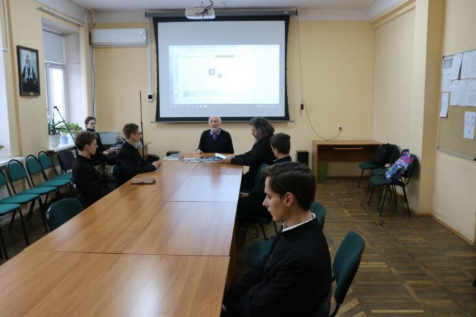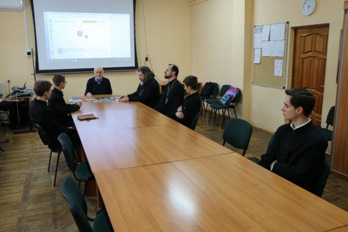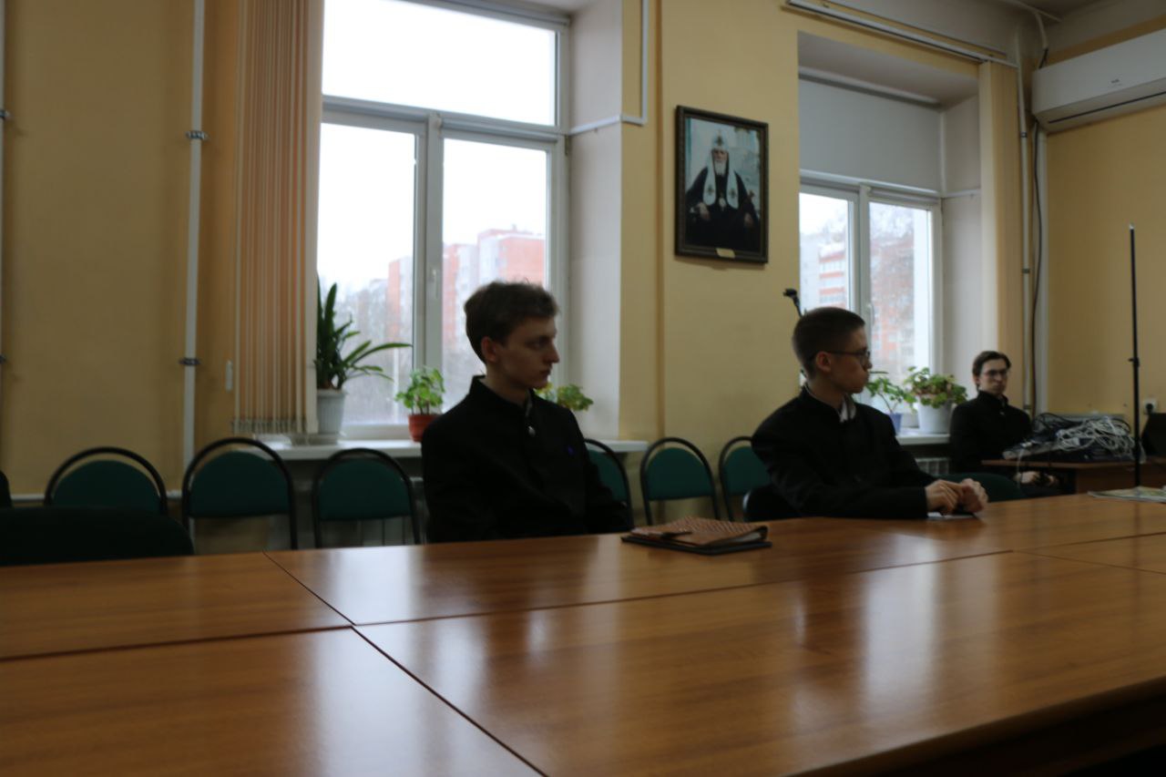По инициативе Тульского отделения Общества русской словесности и по согласованию с ректоратом Тульской духовной семинарии в стенах духовной школы прошла встреча группы семинаристов и преподавателей с Олегом Сениным, помощником митрополита Тульского и Ефремовского Алексия по работе Общества.