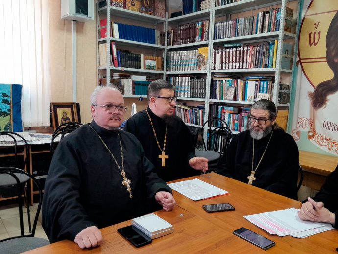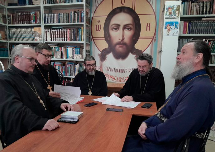 В здании приходской библиотеки тульского храма святителя Алексия прошло заседание коллегии отдела религиозного образования и катехизации Тульской епархии с участием помощников благочинных по образовательной деятельности.