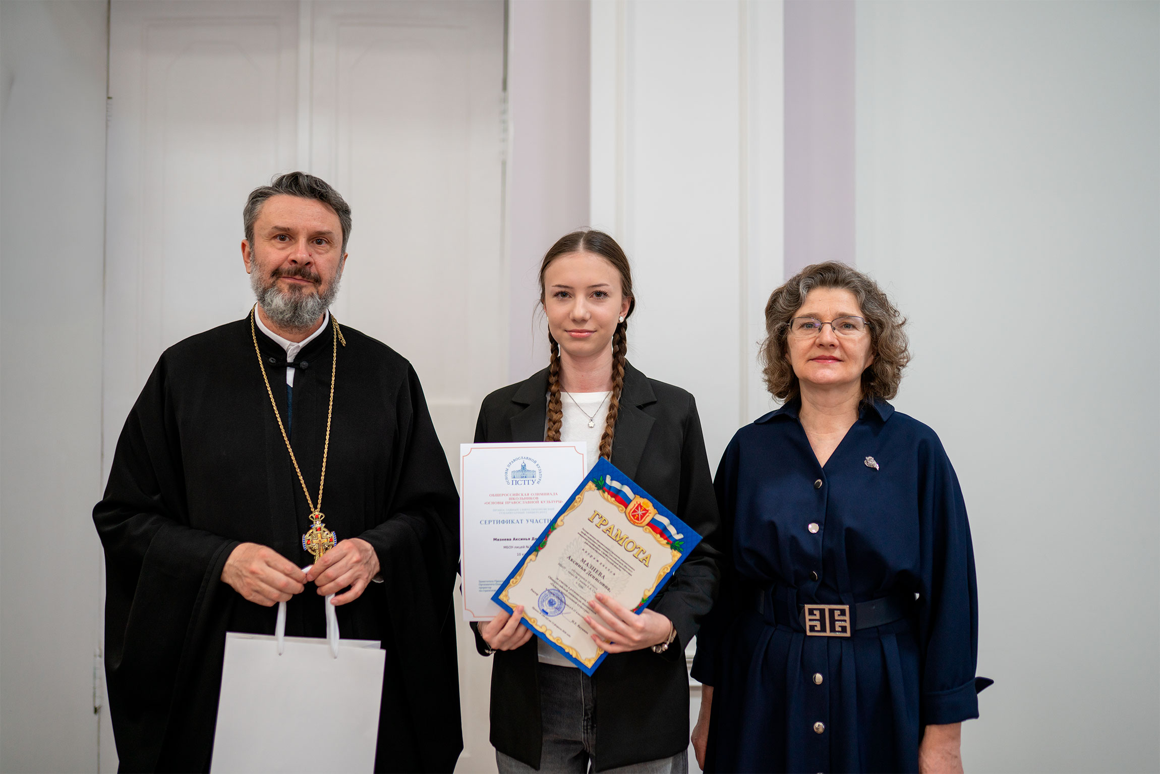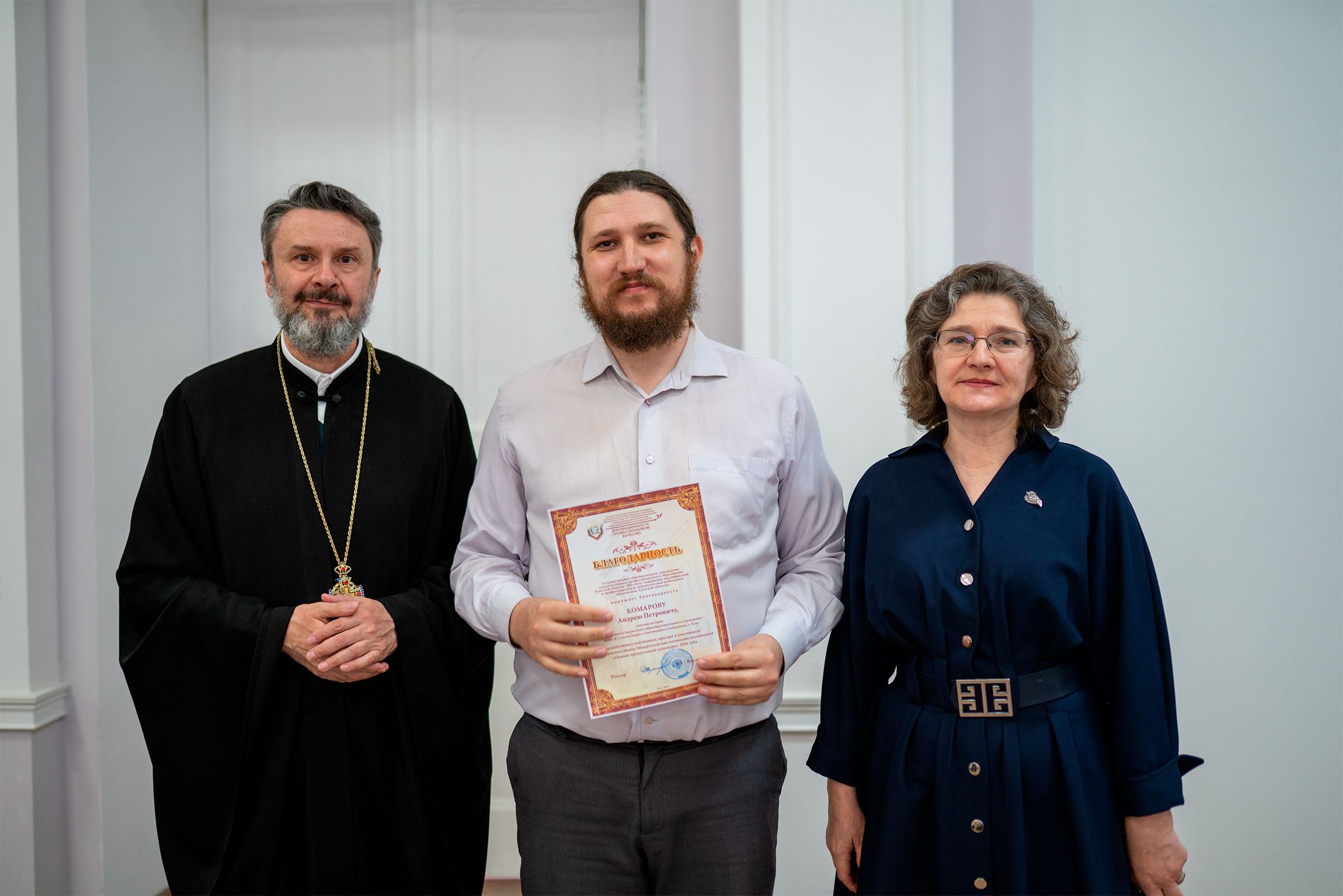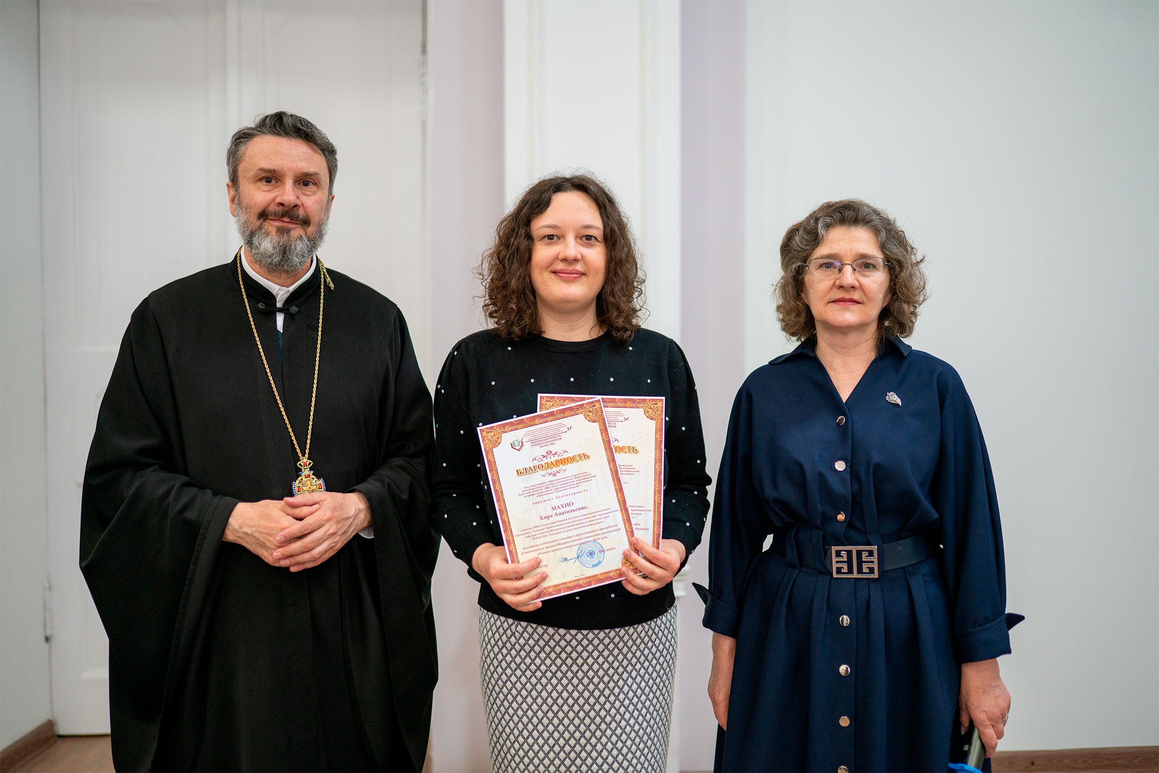 В награждении обучающихся приняли участие проректор по научно-методической работе института Наталия Владимировна Брызжева ипредседатель отдела религиозного образования и катехизации Тульской епархии протоиерей Олег Анохин.
