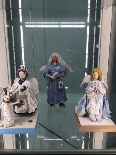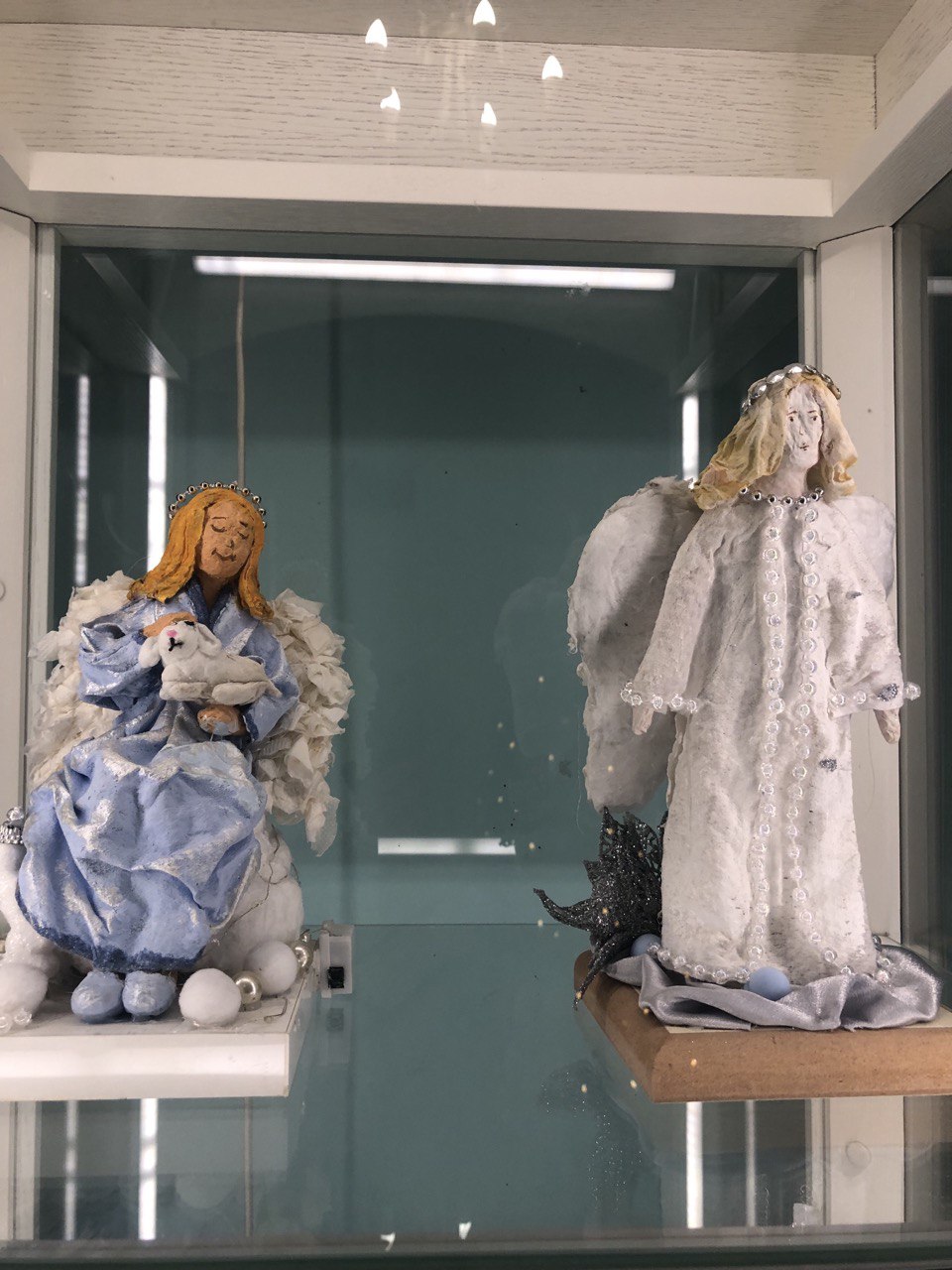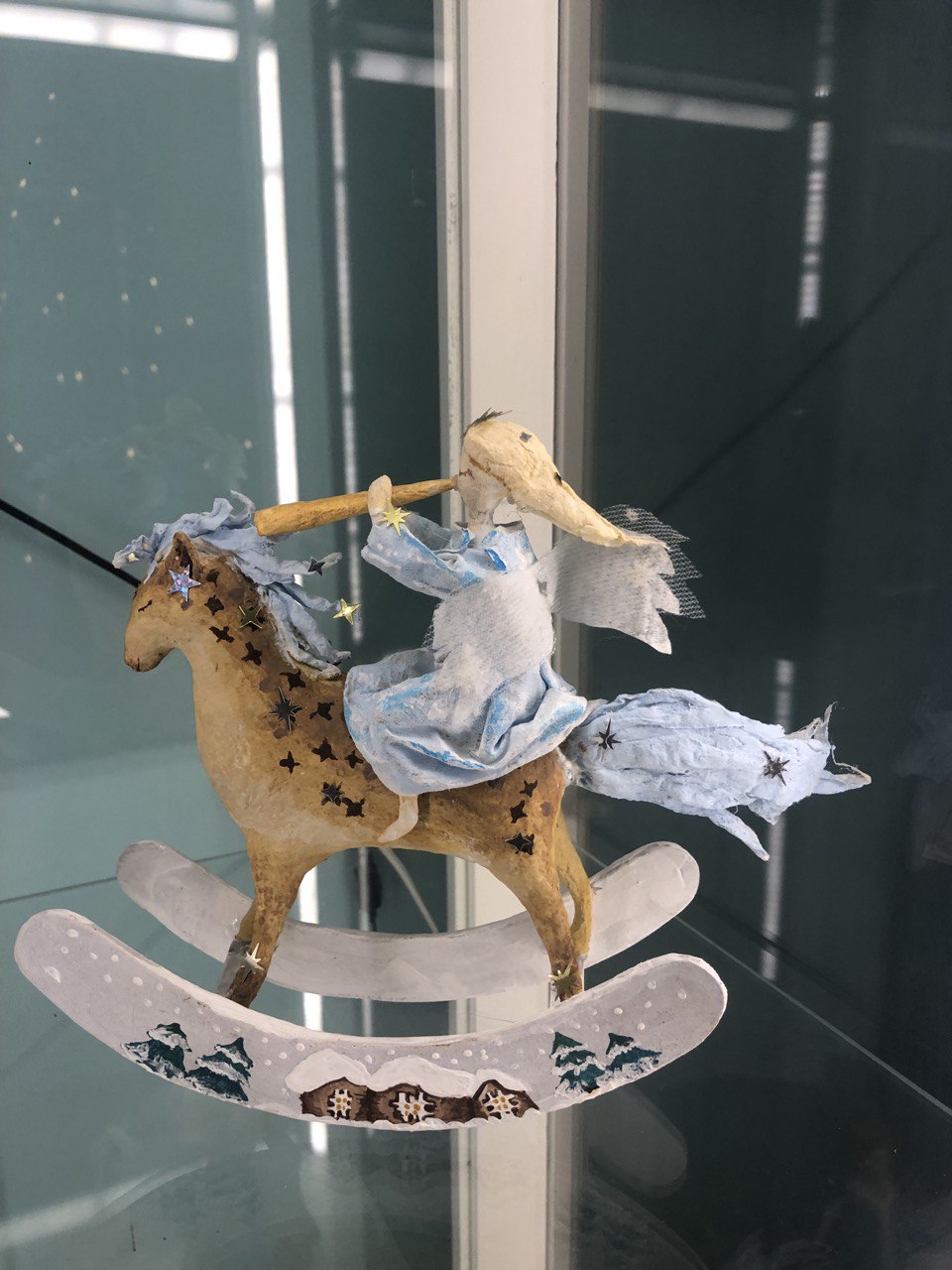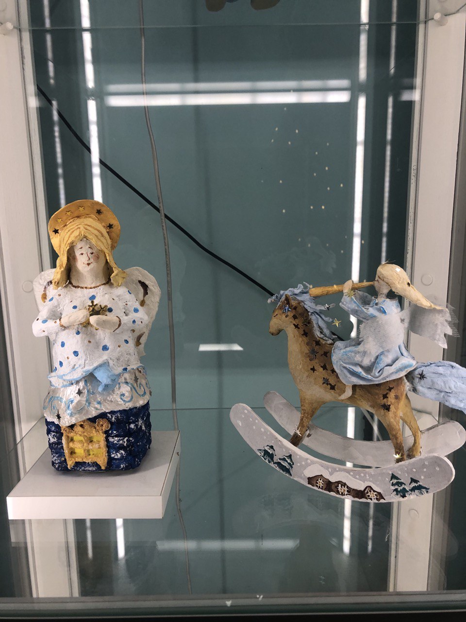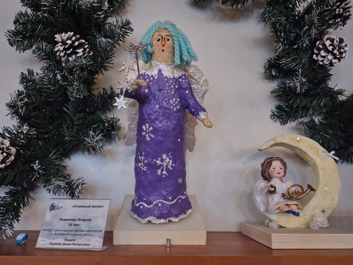 Куратор выставочного проекта, заместитель директора школы искусств Елена Ярыгина рассказала о создании творческих работ: «Папье-маше – это техника, основанная на использовании бумажных волокон, смешанных с клеем или крахмалом. Этот материал легок, доступен и позволяет создавать разнообразные формы. Своих ангелов из папье-маше ребята выполняли в разных стилях, придумывали разные сюжетные истории: ангел «задумчивый на качелях», ангел на месяце и так далее. Каждая работа – это продуманная и исполненная творческая идея, подбор материалов и исполнение задуманного образа, выполненного с душой и любовью к своему персонажу».