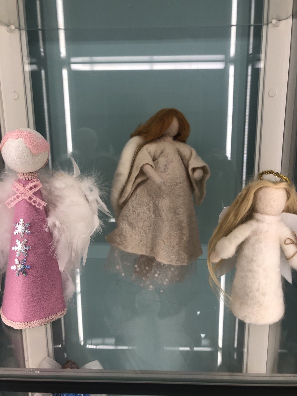 Рождественские ангелы из папье-маше выполнены учащимися творческого объединения «Увлекательный мир папье-маше» МАУДО «Центр художественного мастерства» городского округа Королев Московской области.