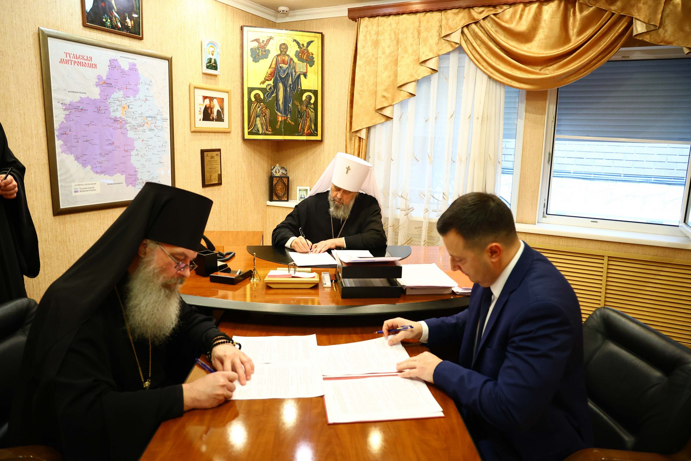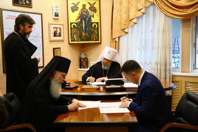 В рамках сотрудничества Тульской митрополии и Отделения Фонда пенсионного и социального страхования Тульской области между Тульской и Белевской епархиями и Отделением СФР по Тульской области было заключено трехстороннее соглашение. Свои подписи под документом поставили митрополит Тульский и Ефремовский Алексий, епископ Белевский и Алексинский Серафим и руководитель ОСФР по Тульской области Андрей Филиппов.