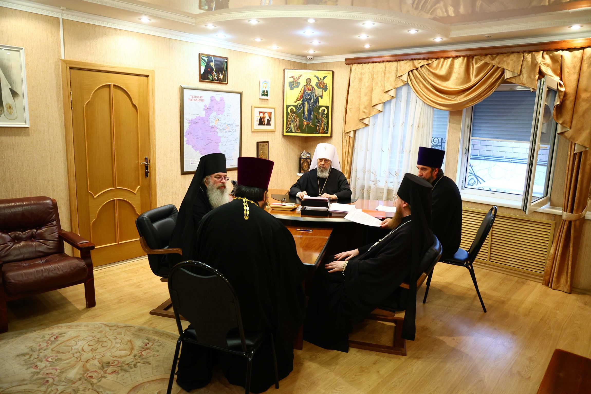 Под председательством митрополита Тульского и Ефремовского Алексия при участии епископа Белевского и Алексинского Серафима, епископа Веневского Феодорита и секретаря Совета протоиерея Павла Савельева состоялось очередное заседание архиерейского совета.
