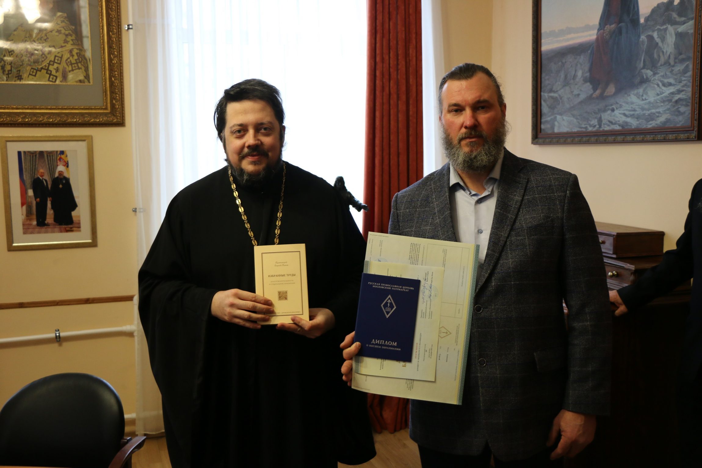 Выпускники 2025/2026 года учебного года — Сергей Алексеев и Алексей Мещеряков — завершили дистанционное обучение на платформе Учебного комитета Русской Православной Церкви по направлению: «Подготовка служителей и религиозного персонала религиозных организаций».