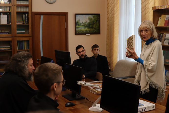По традиции встреча началась с обзора новых книг, которыми пополнилась семинарская библиотека.