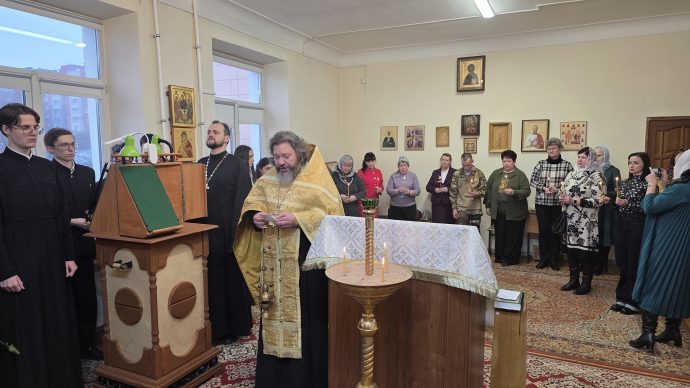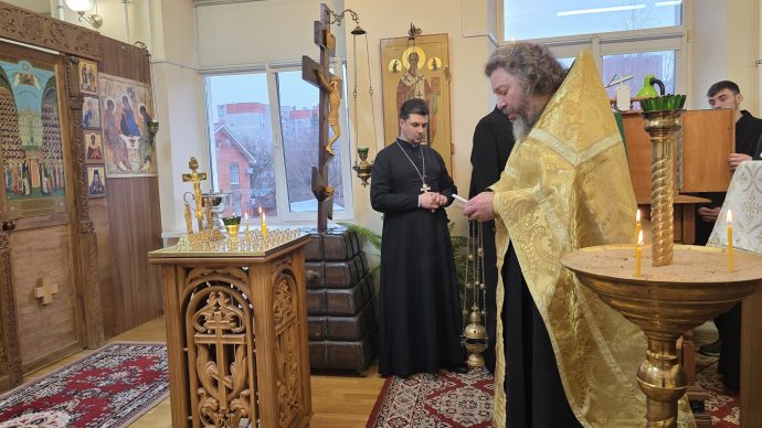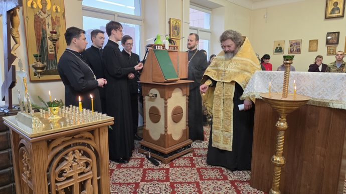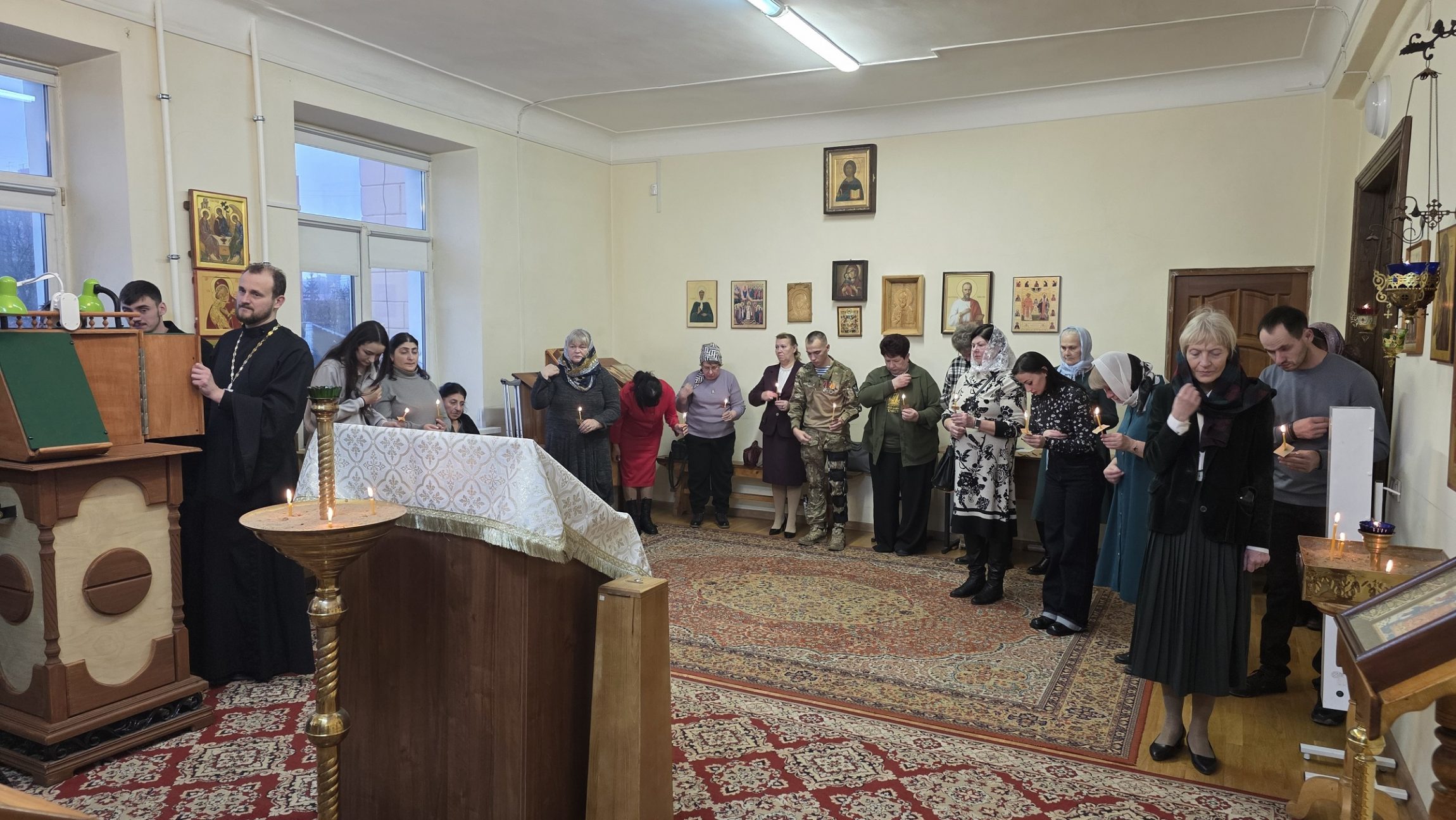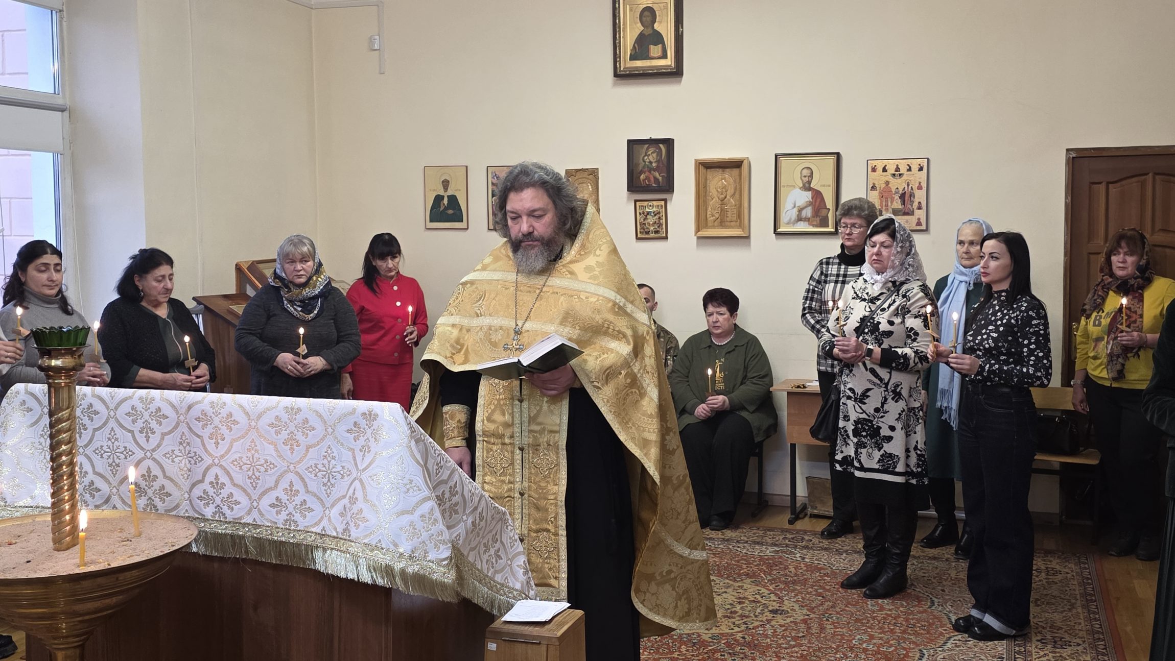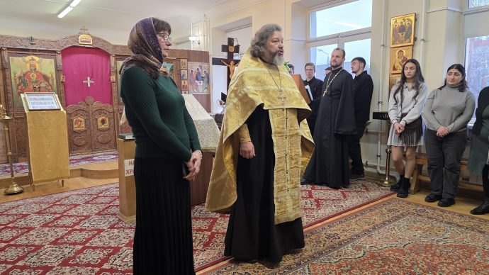 Общение с дорогими гостями началось в семинарском храме, где протоиерей Михаил Ключарёв, проректор по воспитательной работе ТулДС, старший преподаватель иерей Максим Хланта и преподаватель иерей Александр Диканёв совершили литию по погибшим и молебен о здравии их близких.