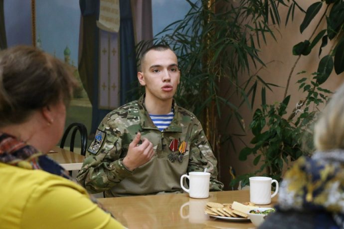 Почти все пришедшие женщины — это вдовы, матери, пережившие любимых сыновей, сестры, лишившиеся братьев. Всего несколько человек с радостью могли сказать, что по-прежнему получают весточки от своих дорогих бойцов. Вместе с мамой пришел на встречу и 23-летний воин Дмитрий, еще не восстановивший после тяжелого ранения, на костылях. Он — один из тех, кто осуществлял легендарную операцию «Поток» — прорыв по судженской трубе в тыл врага.