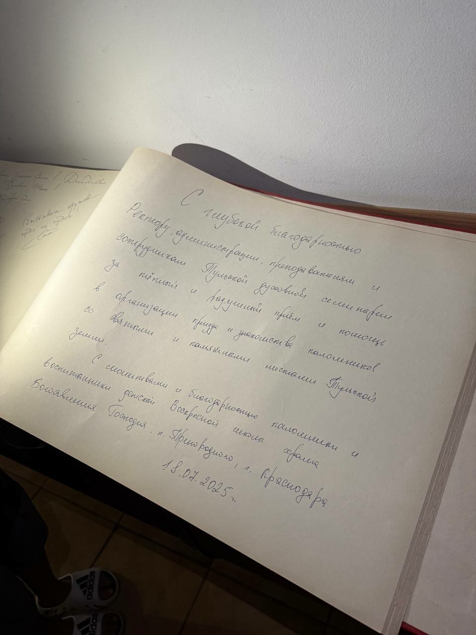 «Сердечно благодарим ректора Тульской духовной семинарии иерея Льва Махно, преподавателей и сотрудников за такой теплый и радушный прием, за помощь в организации приезда и знакомства паломников со святынями и памятными местами Тульской земли», — говорится в записи, сделанной в семинарской Книге отзывов.