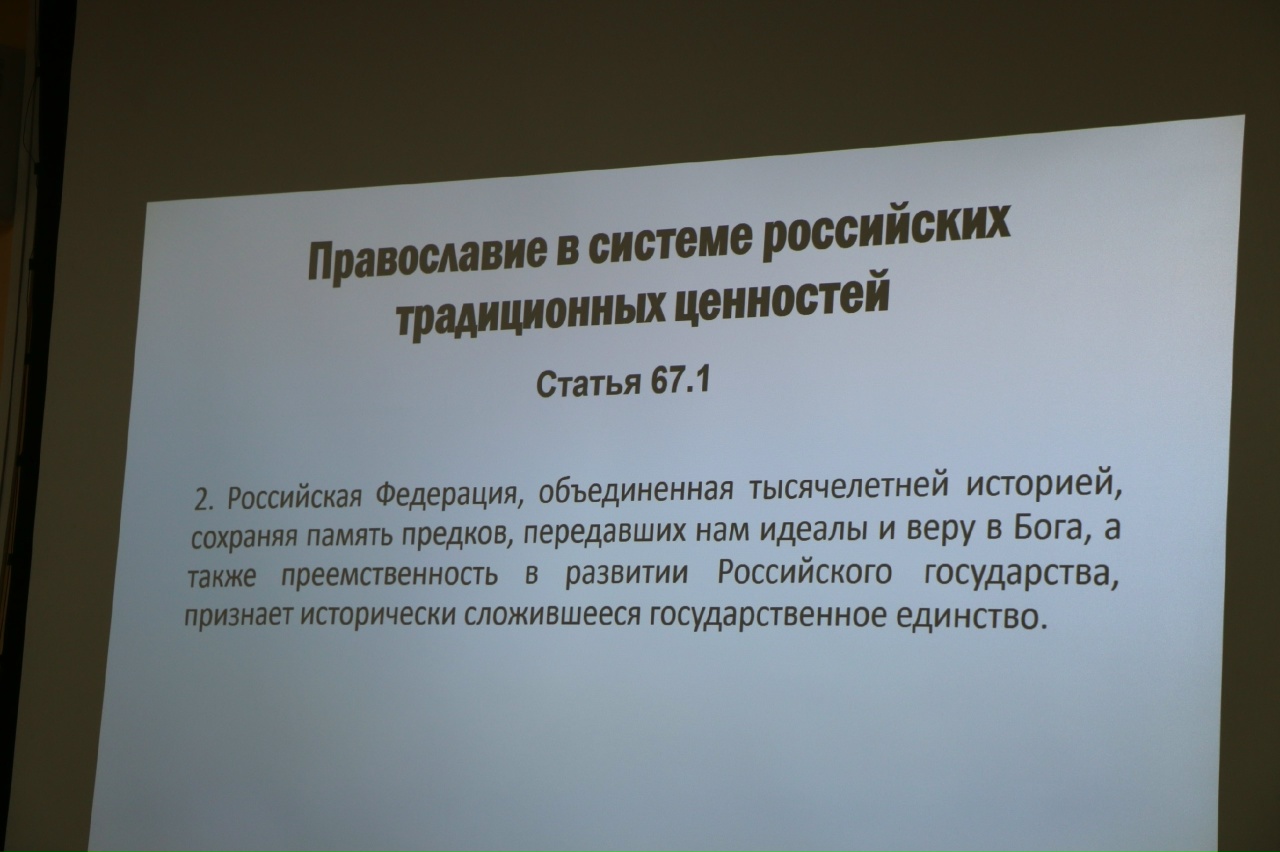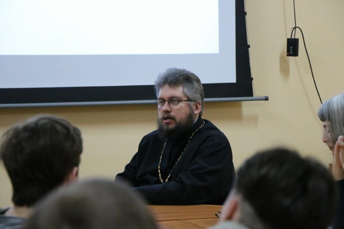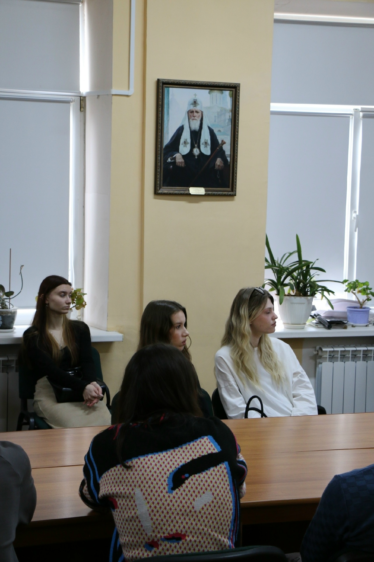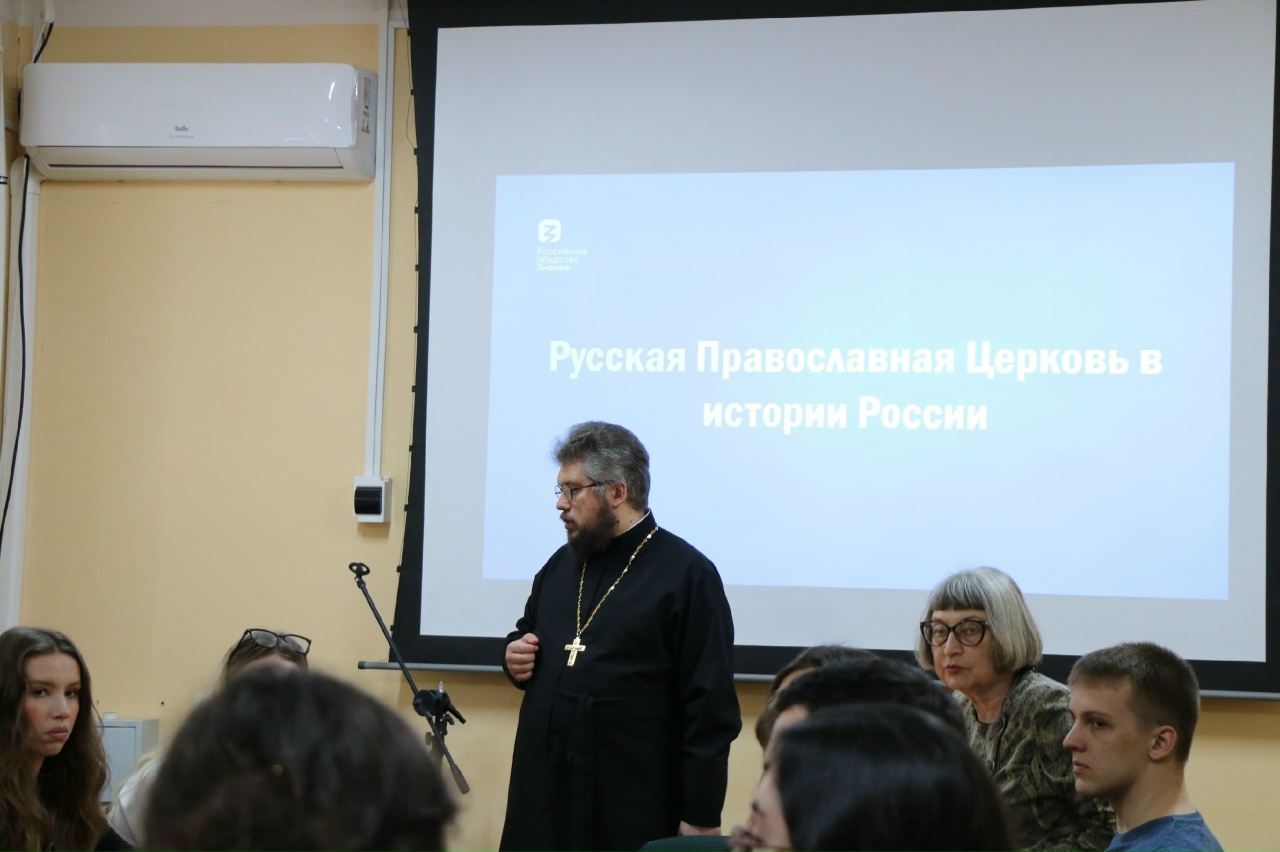 Затем в преподавательской состоялась лекция-беседа на тему «Русская Православная Церковь в истории России», в которой помимо студентов-социологов приняли участие студенты кафедры теологии ТулГУ и Тульской духовной семинарии.